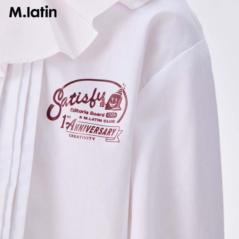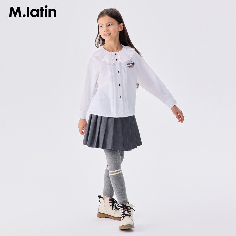 马拉丁童装儿童衬衫秋装女大童门襟塔克褶印花点缀长袖衬衫