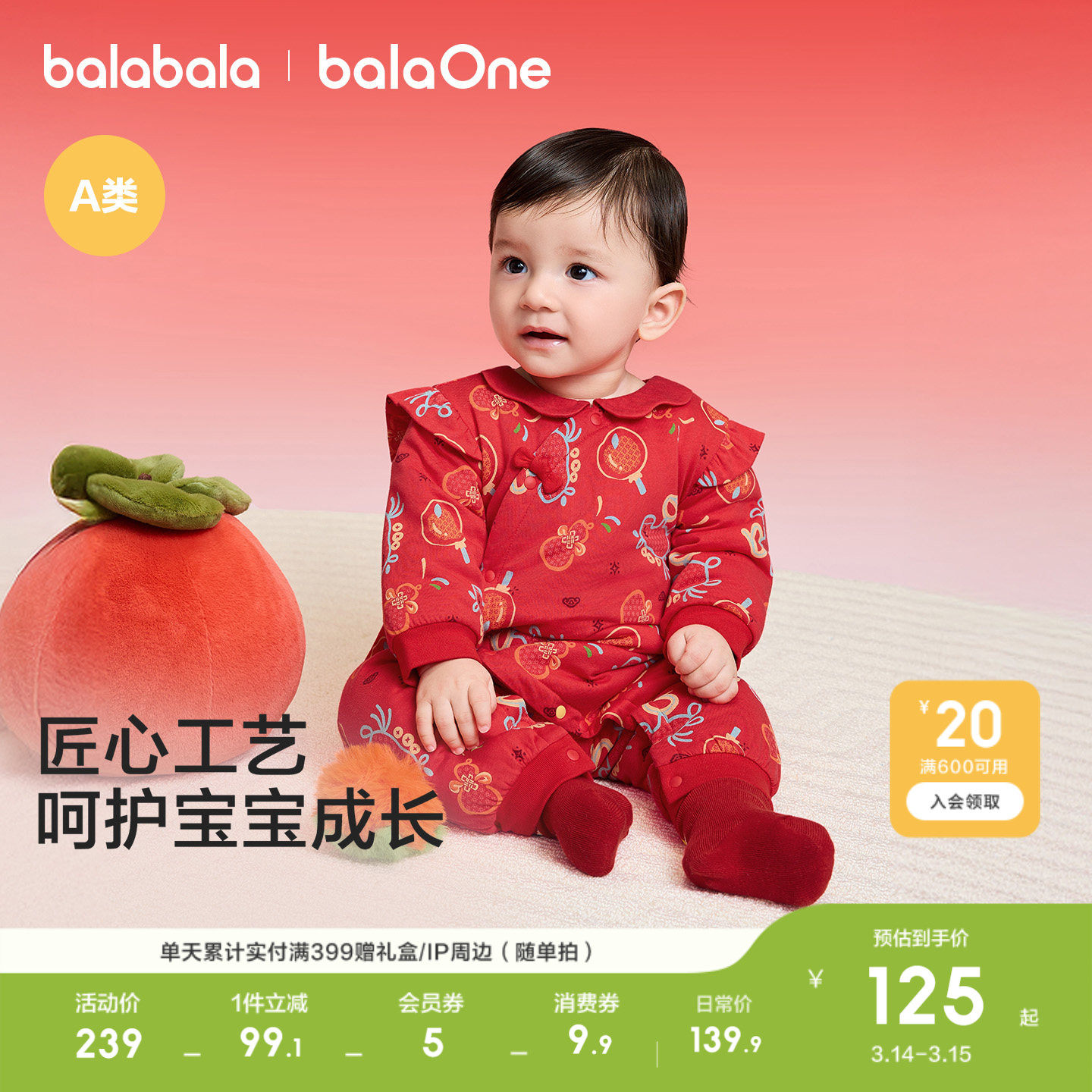 巴拉巴拉童装新生婴儿连体衣哈衣2026新款年服宝宝衣服红色喜庆萌