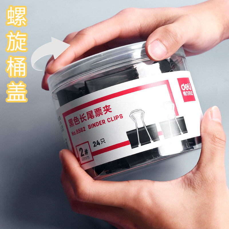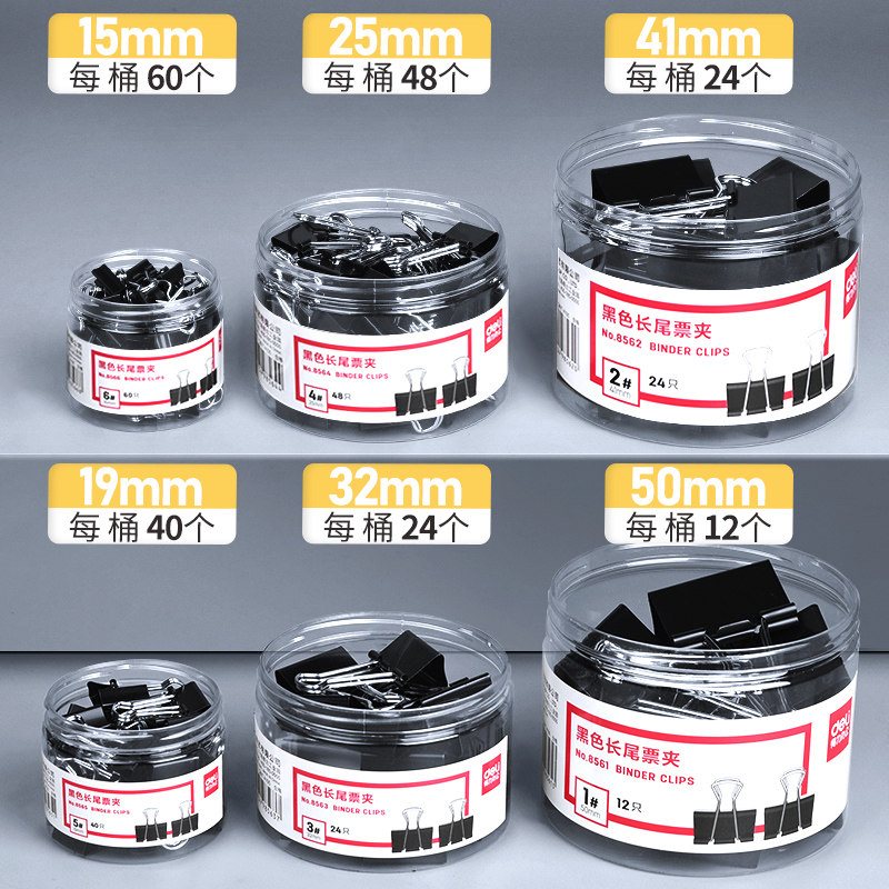 得力黑色长尾夹大号夹子文具小号多功能书夹子试卷夹燕尾夹凤尾夹文件夹子文具票夹办公金属小夹子固定工具