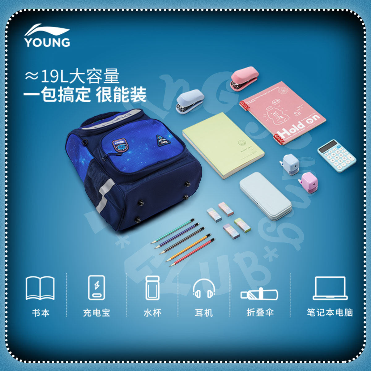 李宁童双肩包男女大童2026新款运动生活系列背包反光环保运动包