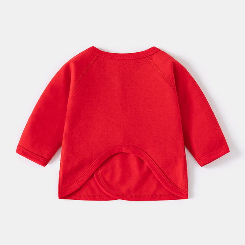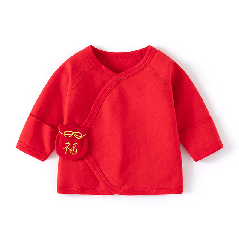 婧麒半背衣初生婴儿春秋季新生儿衣服宝宝纯棉红色上衣52码和尚服