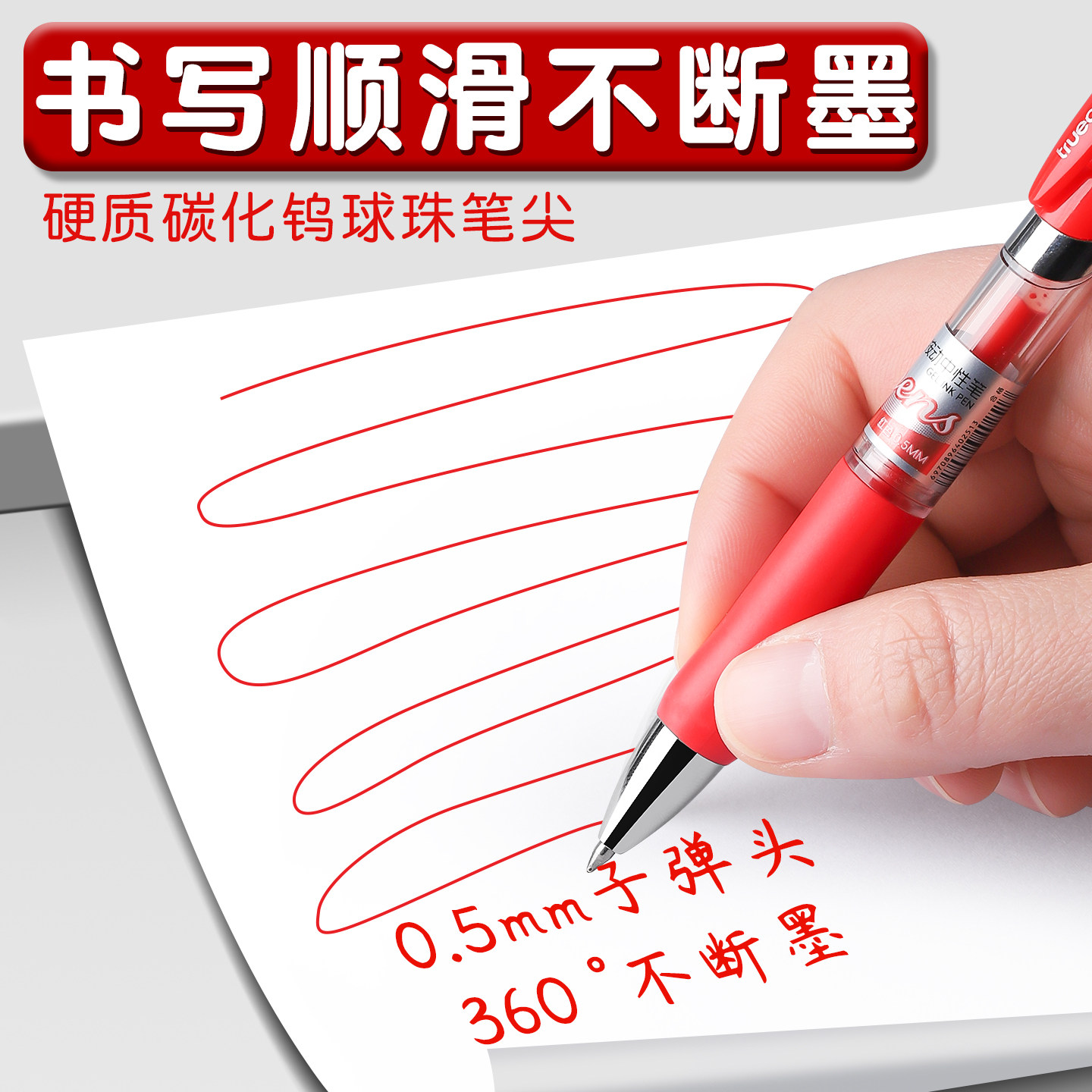 真彩红笔学生专用老师按动式批改作业红色中性笔高颜值按动圆珠笔水笔签字笔教师按压式走珠笔水性笔红笔芯