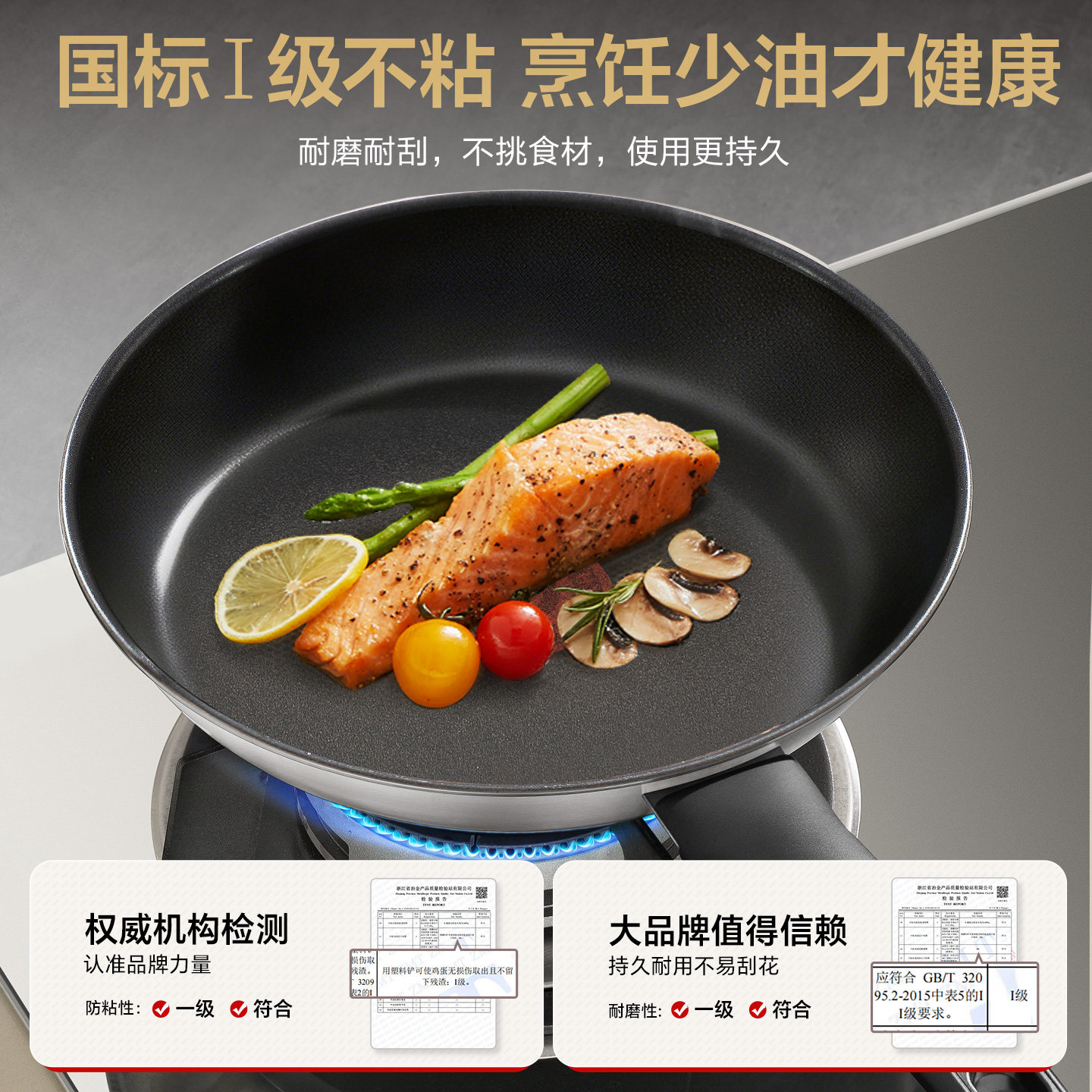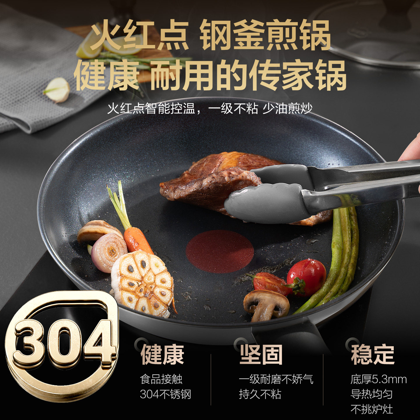 钛红芯控温平底锅不粘锅家用无涂层炒菜煎蛋牛排电磁炉专用深煎锅