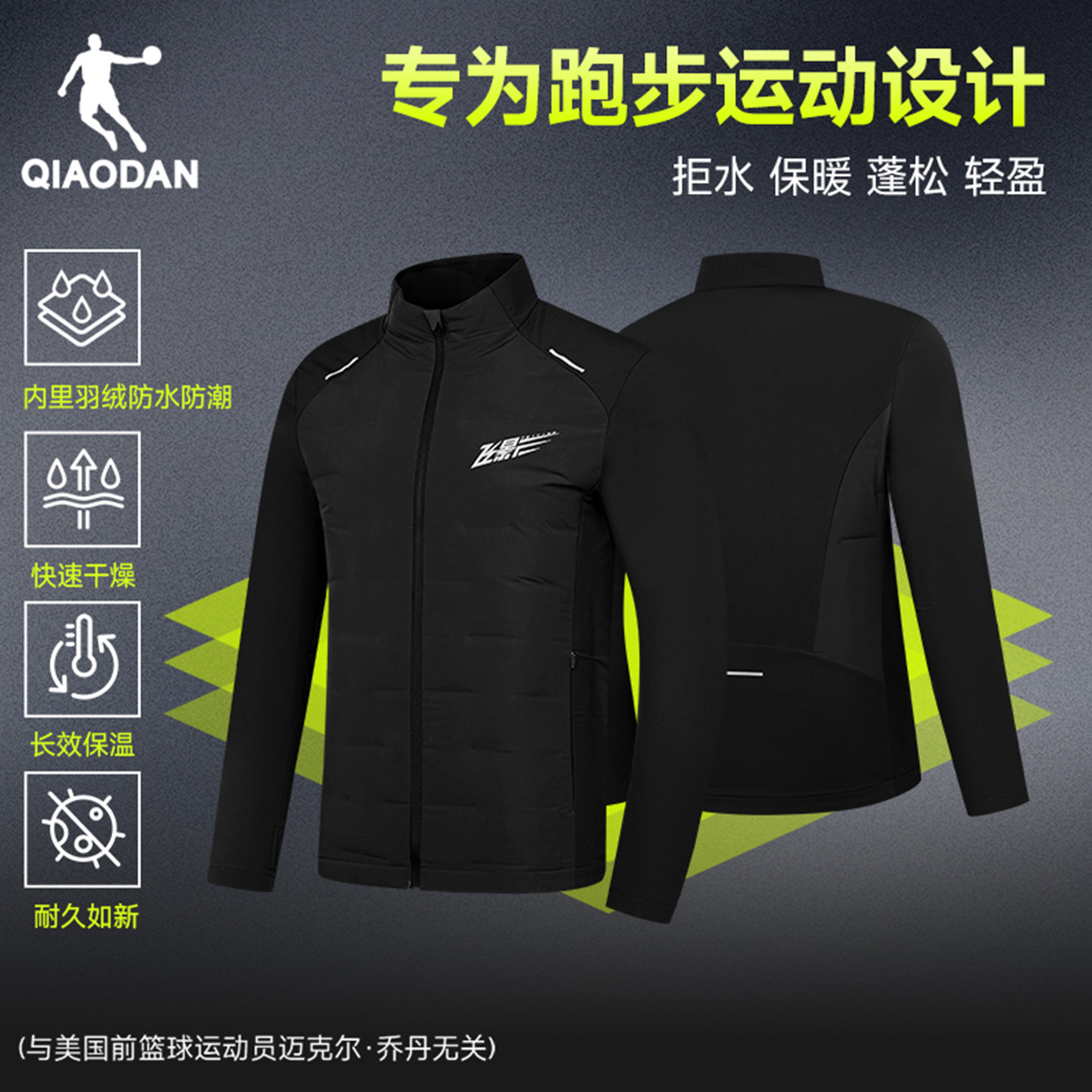 {可机洗}乔丹飞影拒水羽绒服男士冬季新款防水跑步运动外套风衣装