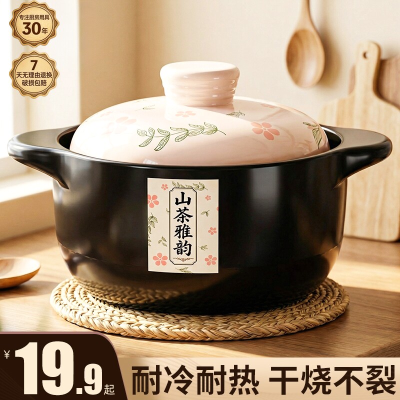 砂锅煲家用陶瓷炖汤锅燃气灶专用耐高温干烧不裂煲仔饭小沙锅煲汤