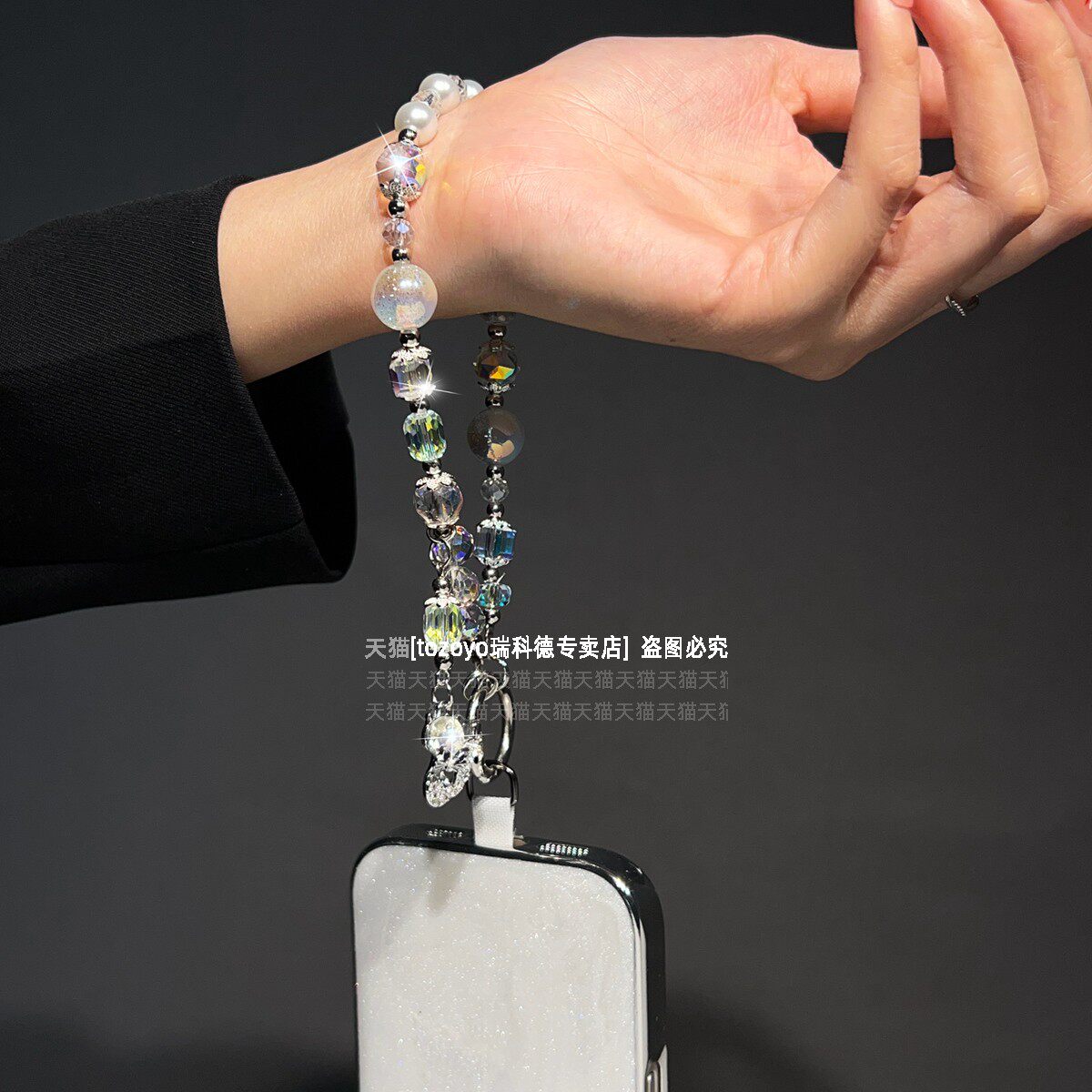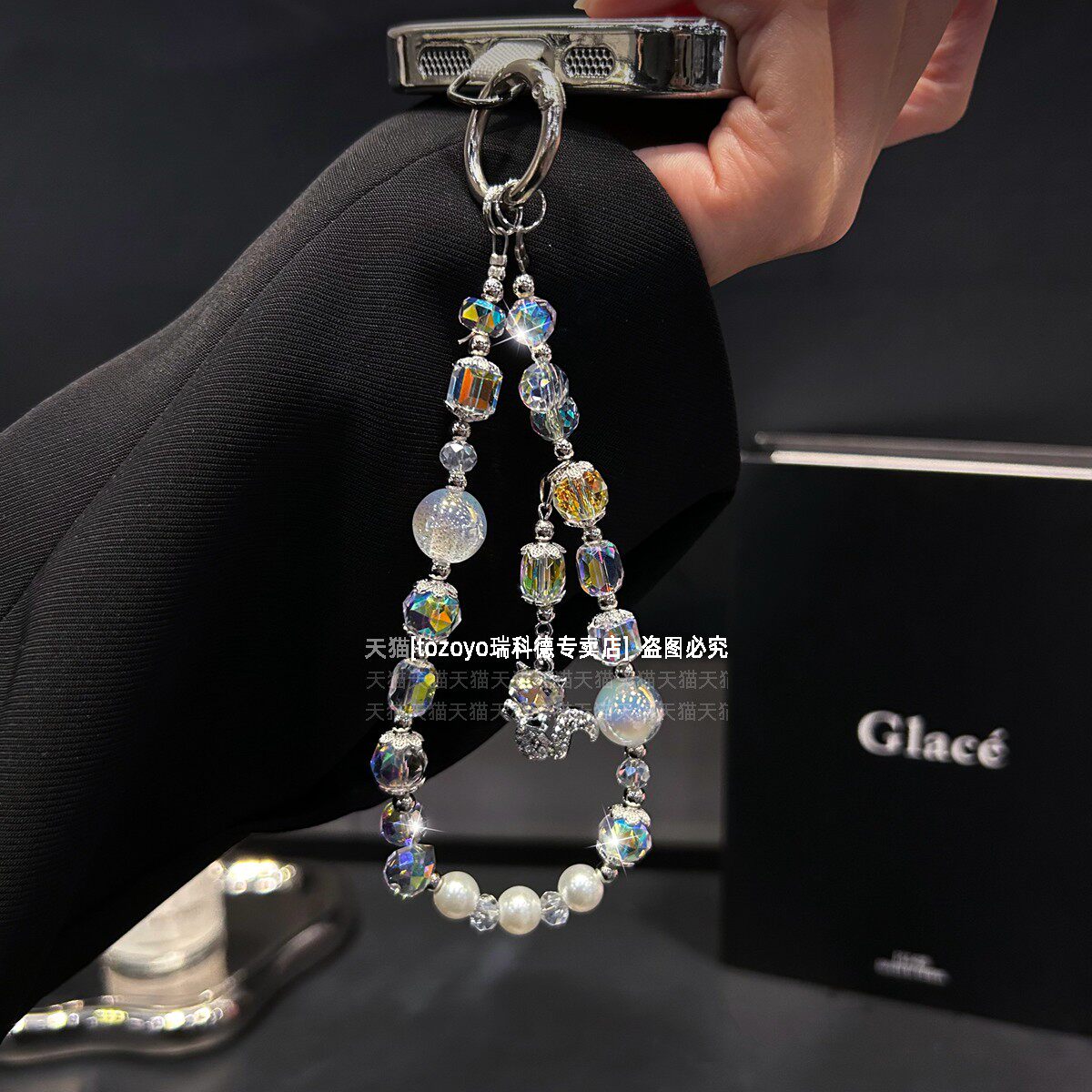 高质感狐狸吊坠水晶手机链,手腕挂件