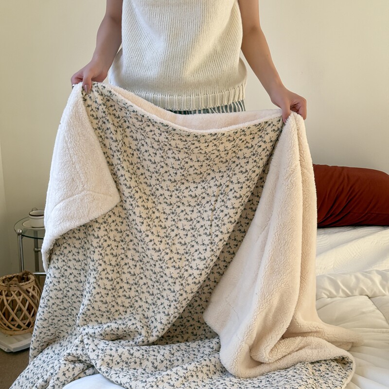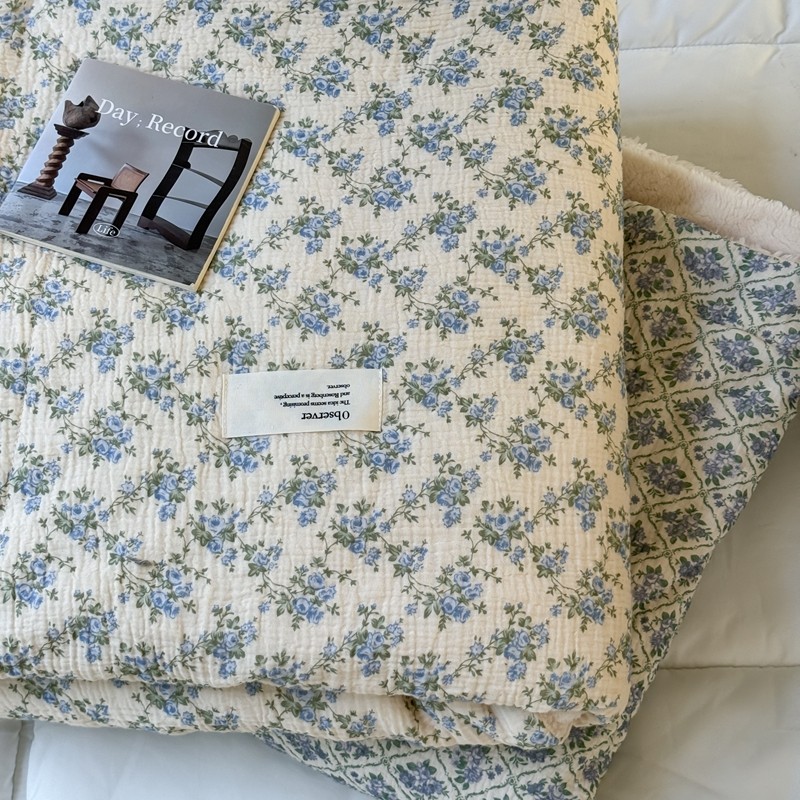 月亮睡了 复古碎花全棉纱布羊羔绒宝宝毯毛毯多功能毯子学生宿舍