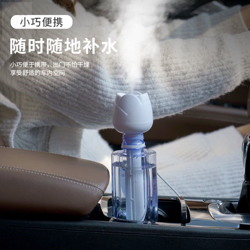 玫瑰花型加湿器 便携车载USB充电静音喷雾化器水瓶通用密封不漏水