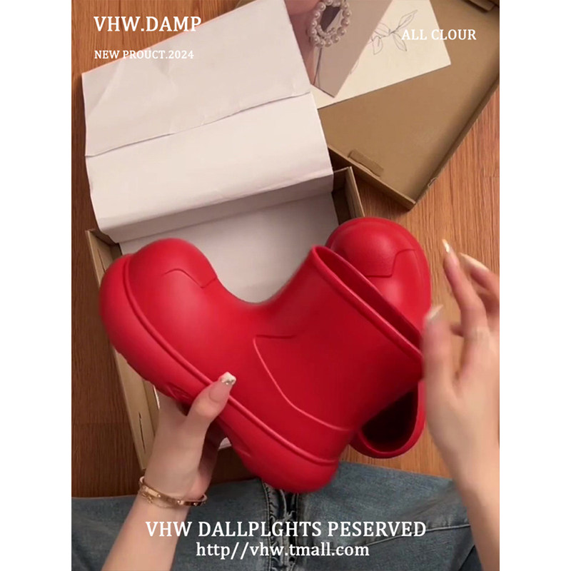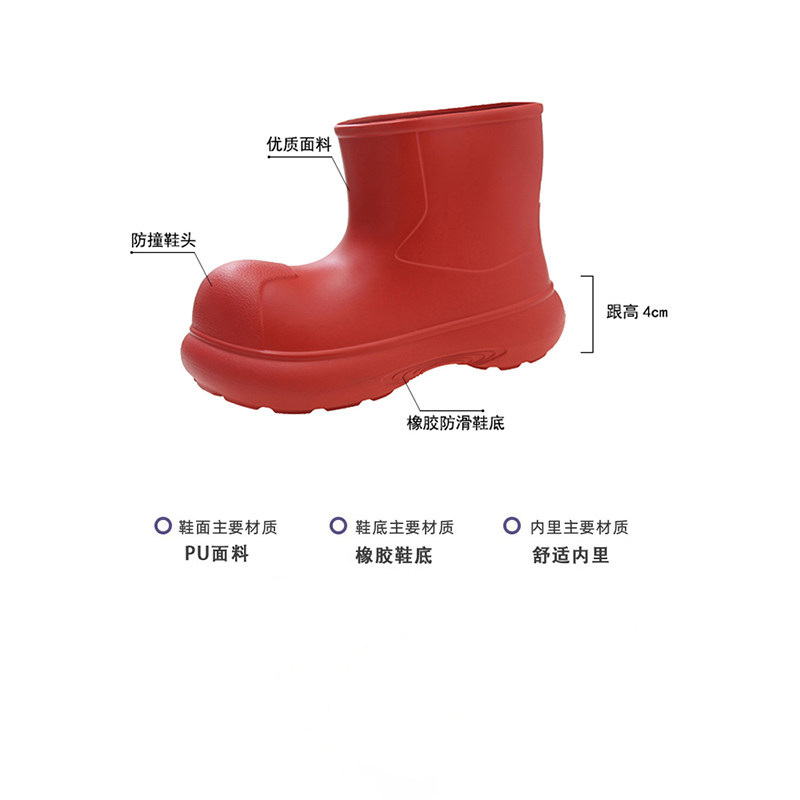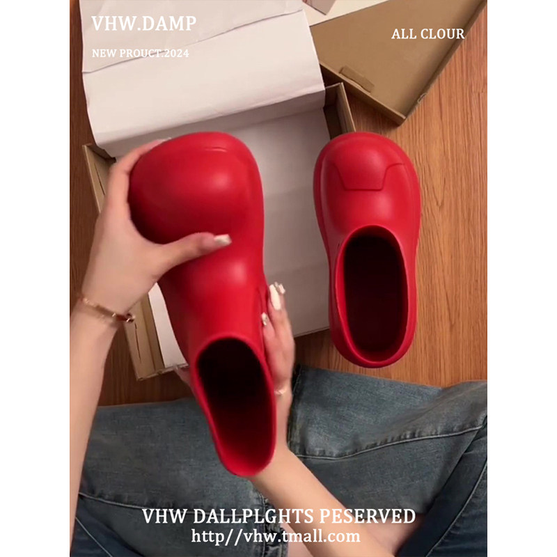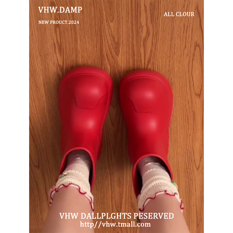 红色雨鞋女款2025年新款防水防滑短筒雨靴厚底轻便外穿一脚蹬水鞋