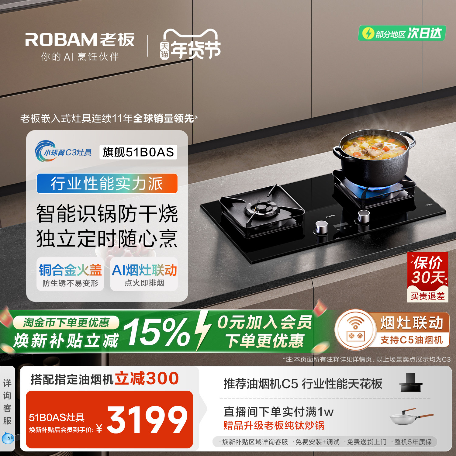 【旗舰新品】老板定时防干烧51B0AS燃气灶家用煤气灶双灶台官方
