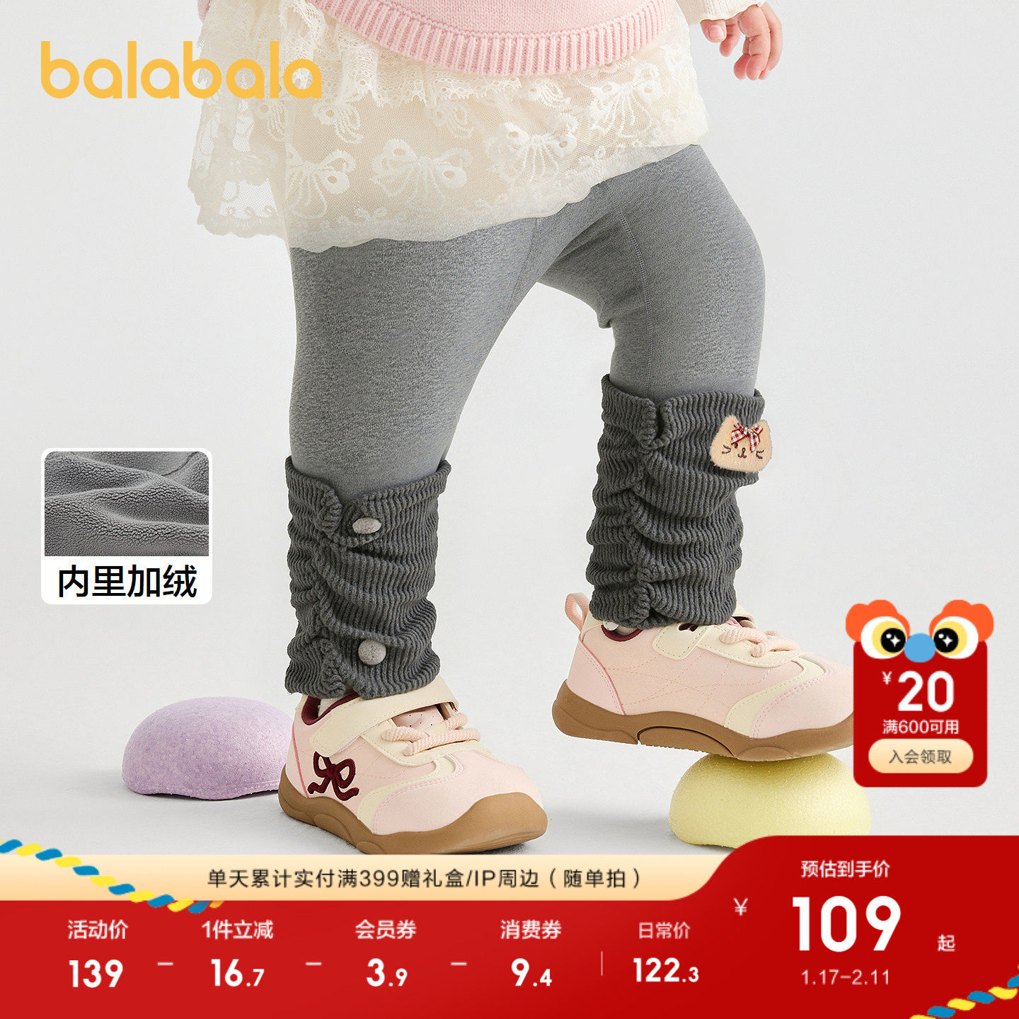 【商场同款】巴拉巴拉女童打底裤加绒假两件裤子秋冬2025新款长裤