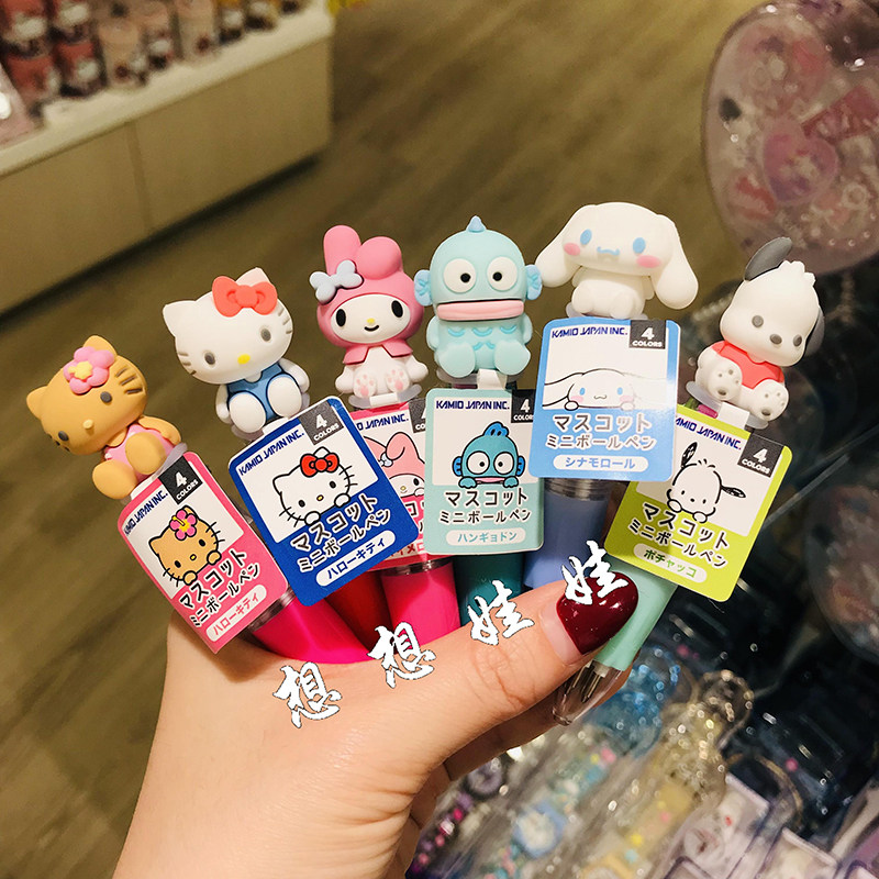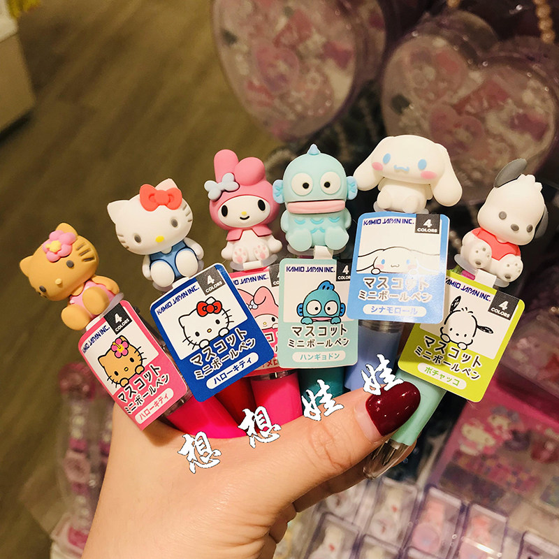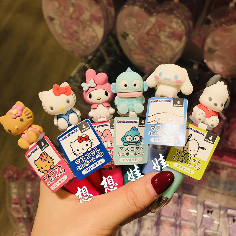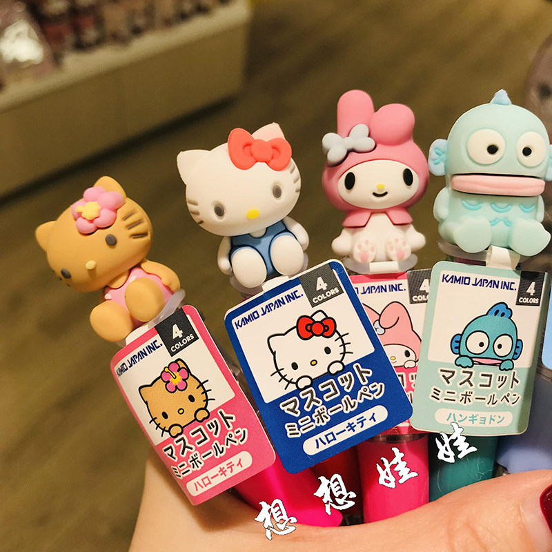 日本三丽鸥黑皮kitty美乐蒂玉桂狗库洛米立体公仔迷你4色圆珠笔