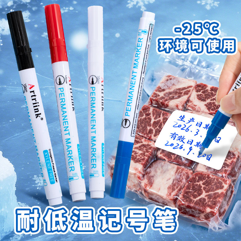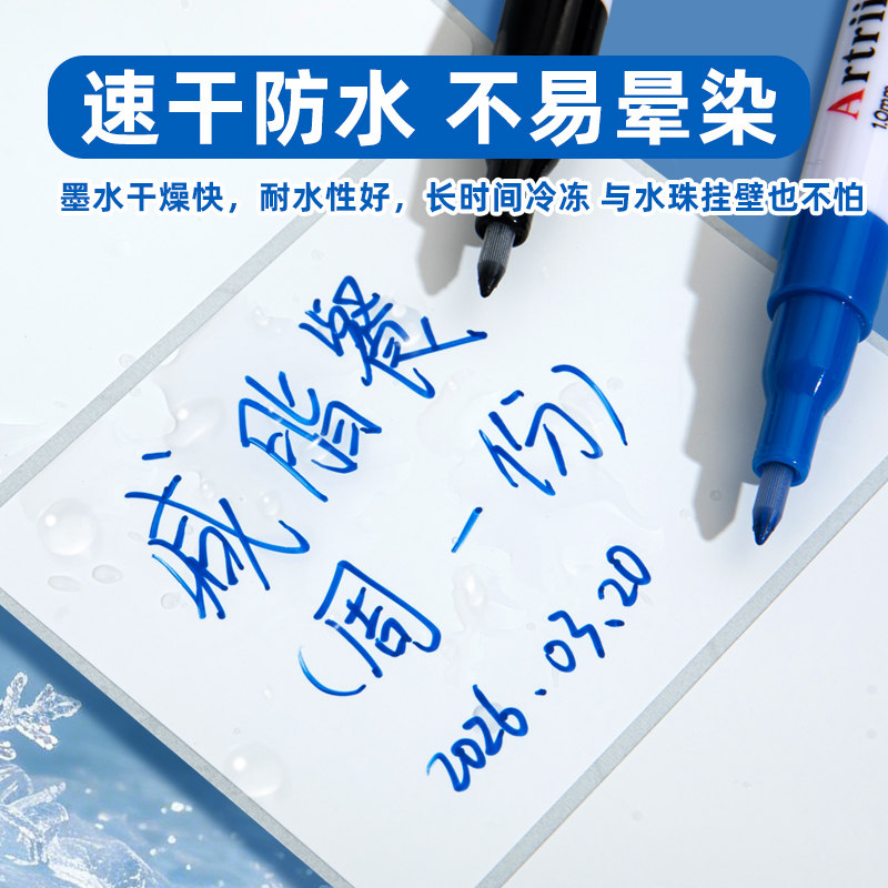 冰箱冷冻储奶袋记号笔耐低温防水速干防油不掉色细头油性冷藏库柜手写标记生产保质使用食用开启日期专用黑色