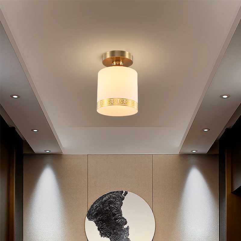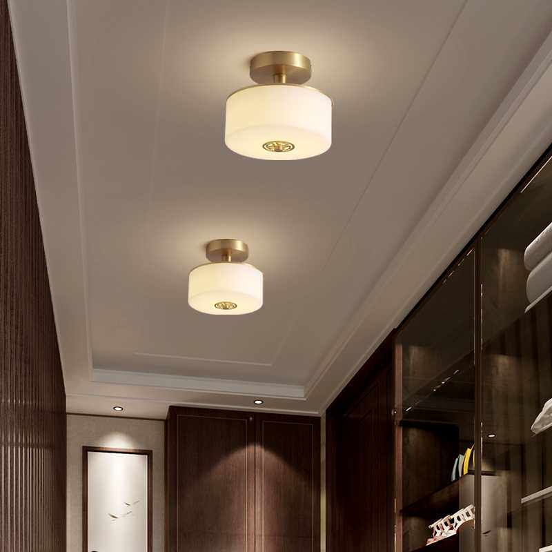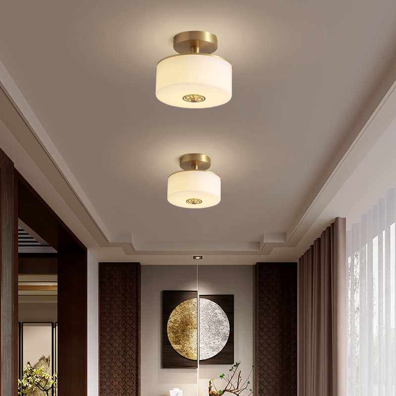 新中式吸顶灯过道阳台灯玄关走廊云石灯简约现代灯饰圆形全铜灯具