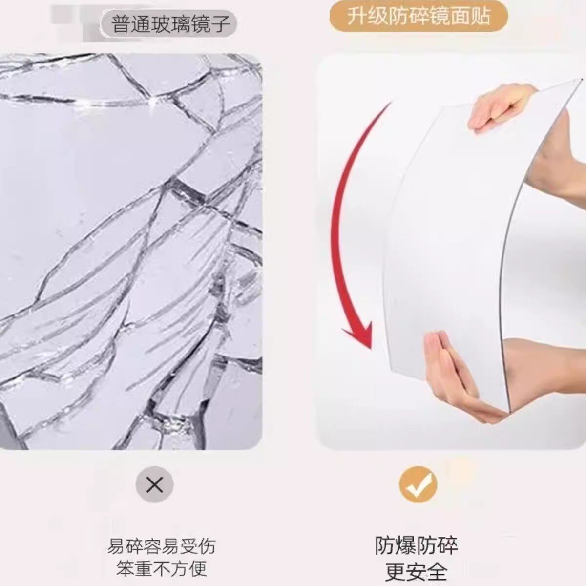 亚克力免打孔贴墙自粘家用镜子试衣镜全身穿衣镜衣柜高清粘贴卧室