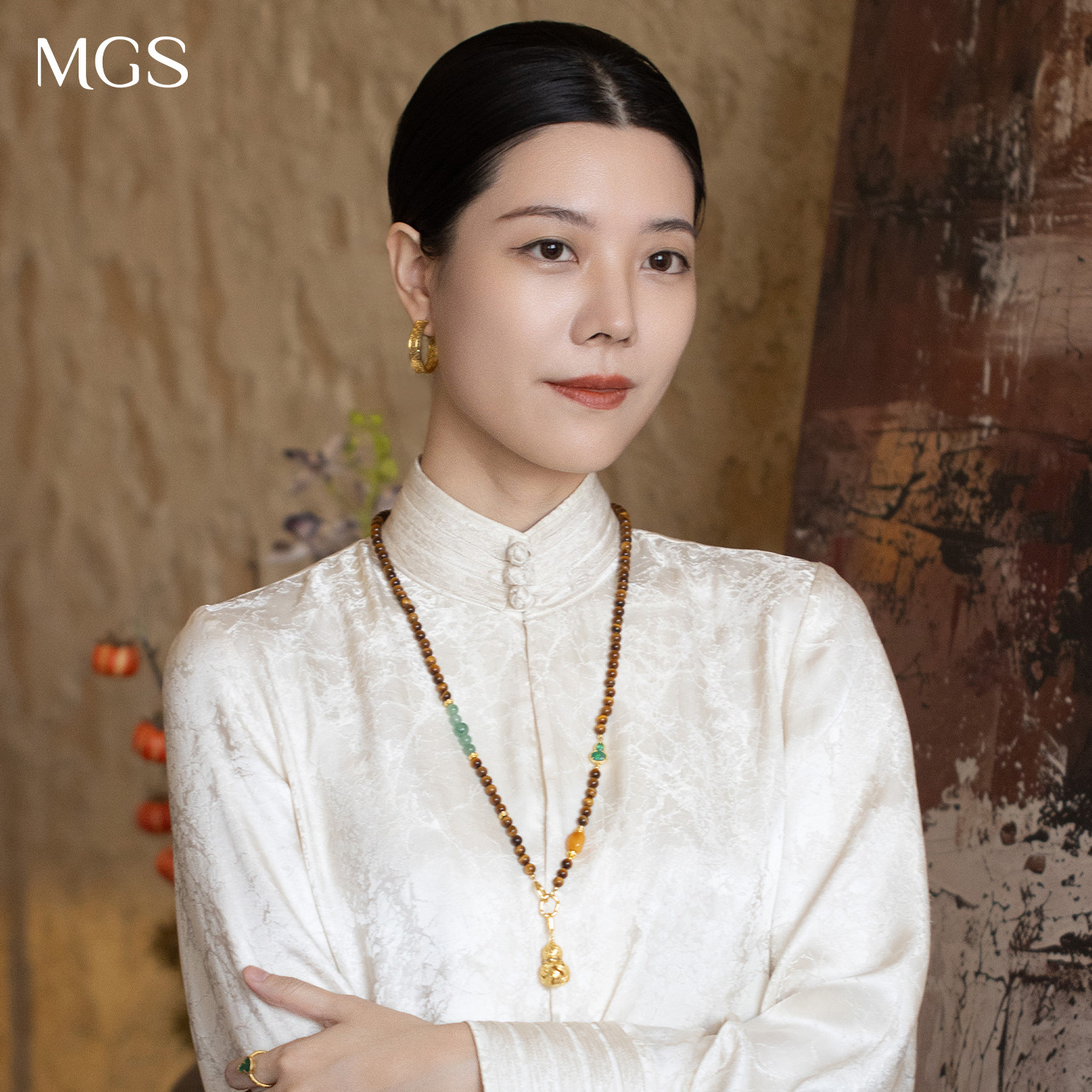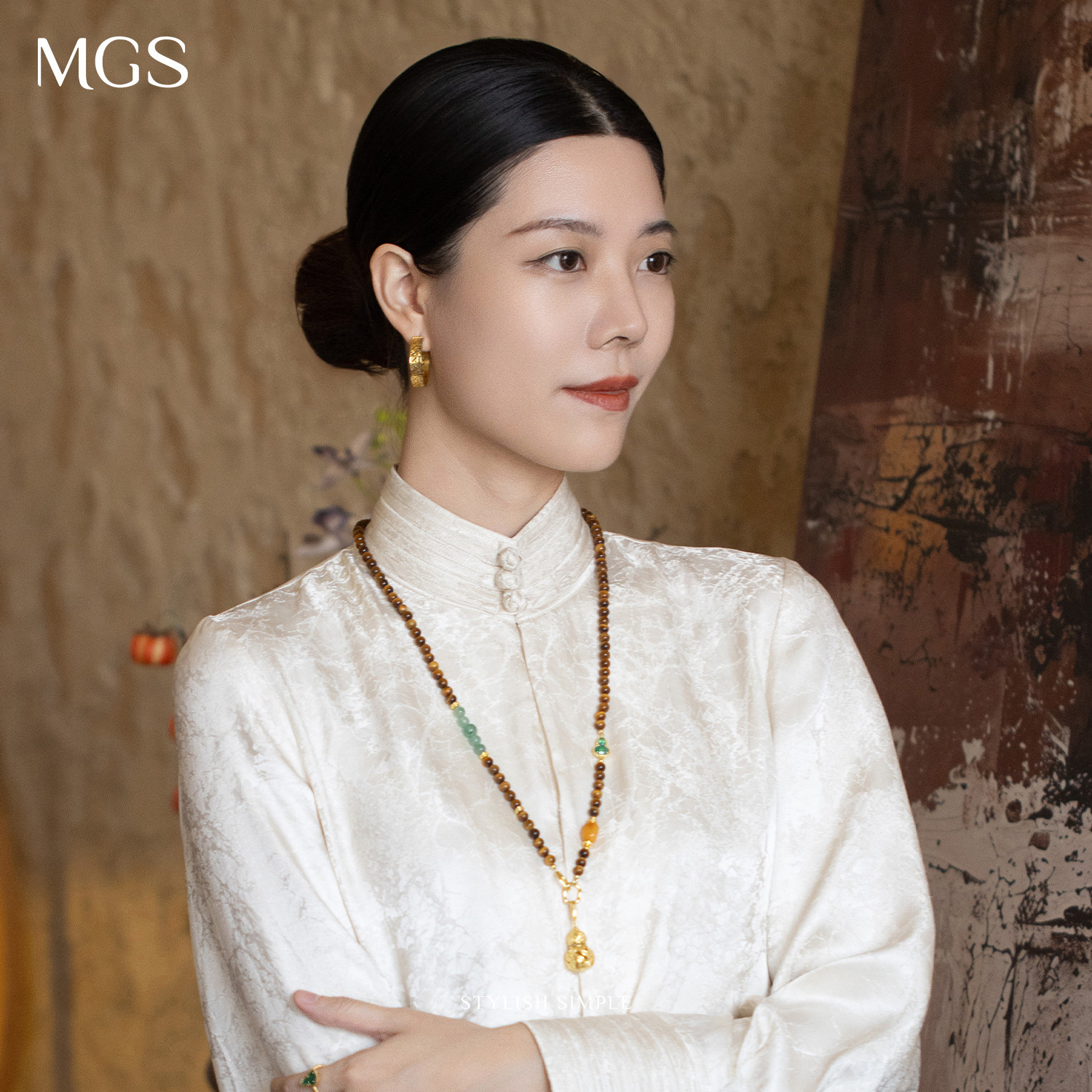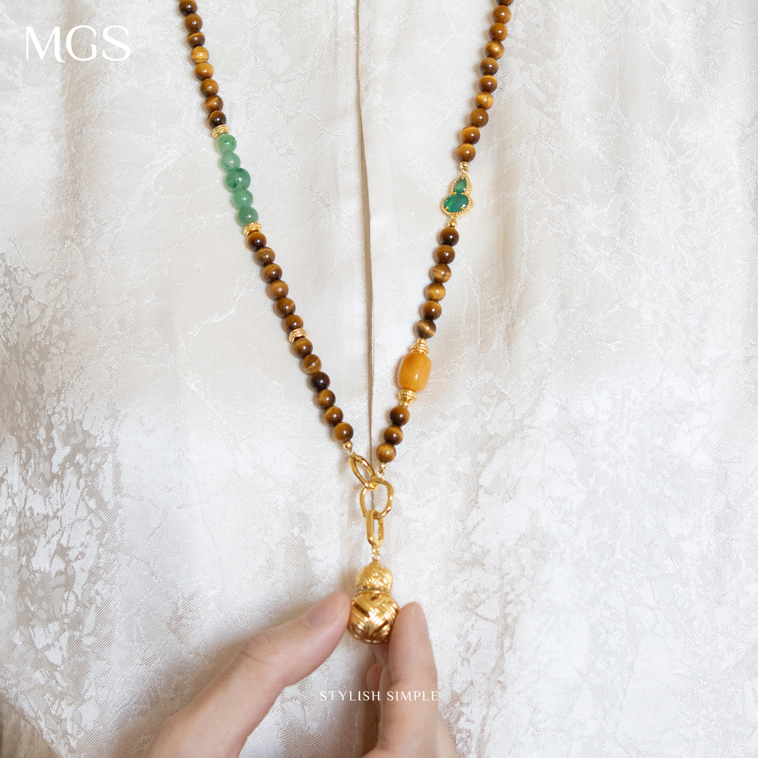 MGS/曼古银宝葫芦系列蜜蜡绿宝石项链女士玛瑙中国风设计毛衣链