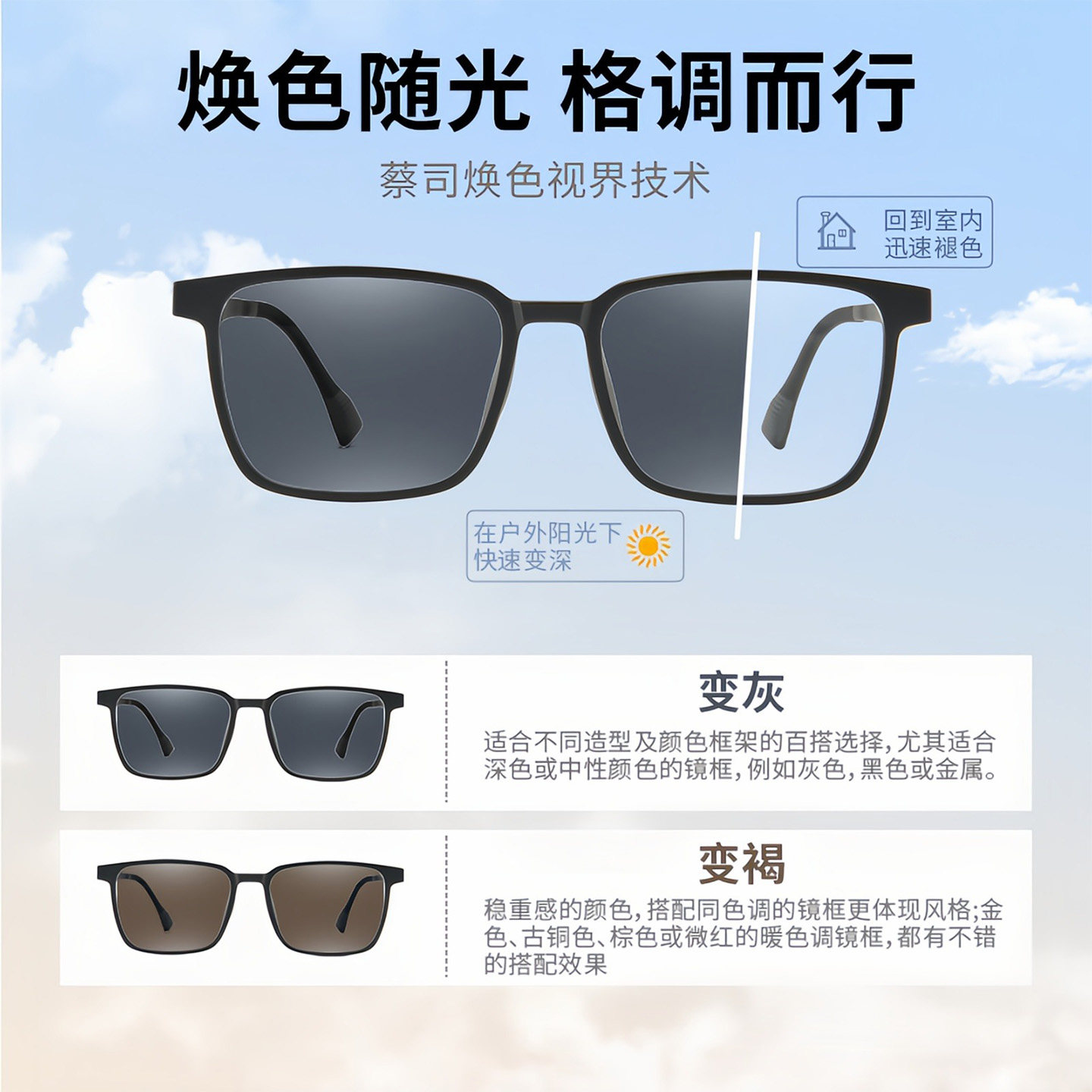 蔡司新品正品焕色视界X变色镜片1.67莲花膜/铂金膜近视眼镜片2片