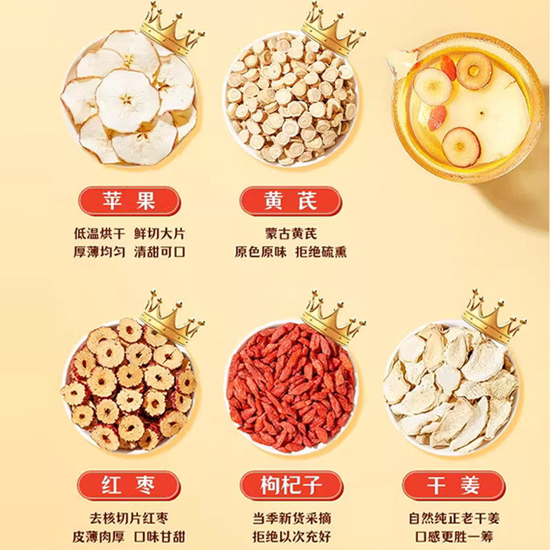 北京同仁堂苹果黄芪茶茶搭麦冬红枣枸杞姜脸黄补气养血气血饮料