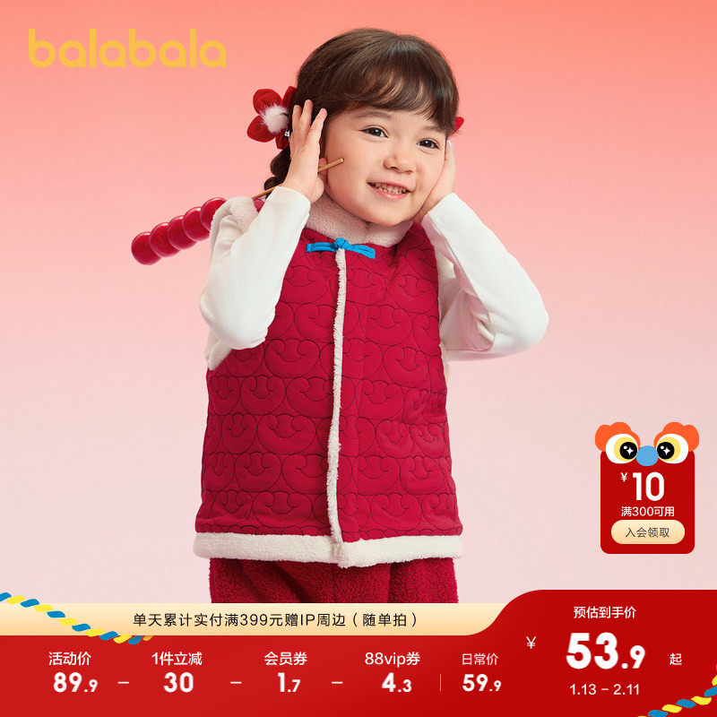 巴拉巴拉宝宝马甲夹棉2025新款男女童背心新年拜年红色加绒春秋装