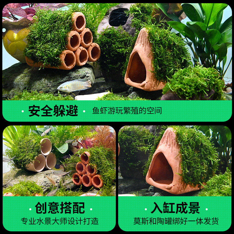 莫斯陶罐水草鱼缸造景真植物鱼虾躲避罐洞虾屋摆件小鱼繁殖躲避屋