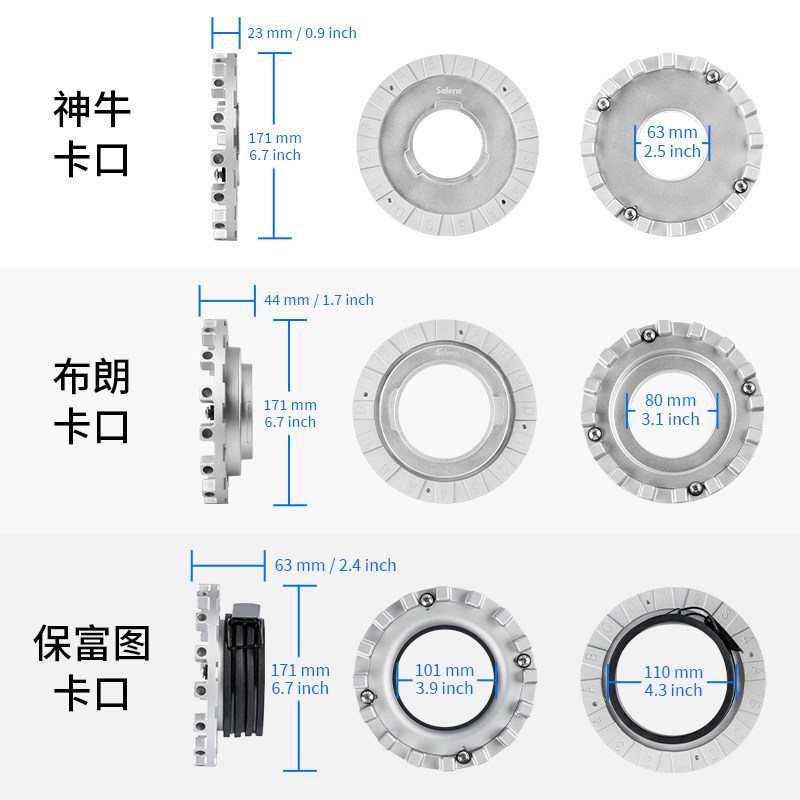 Selens保富图柔光箱内接环卡口闪光灯雷达罩卡盘profoto内接口保富图摄影十六角柔光箱灯附件摄影器材转接口
