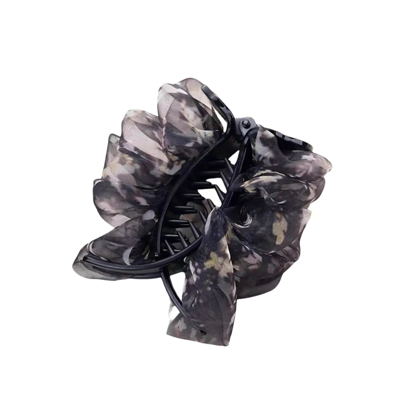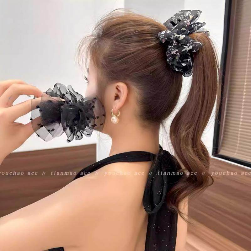 云朵轻奢碎花丸子头盘发抓夹气质百搭网纱发卡韩版优雅时尚发夹