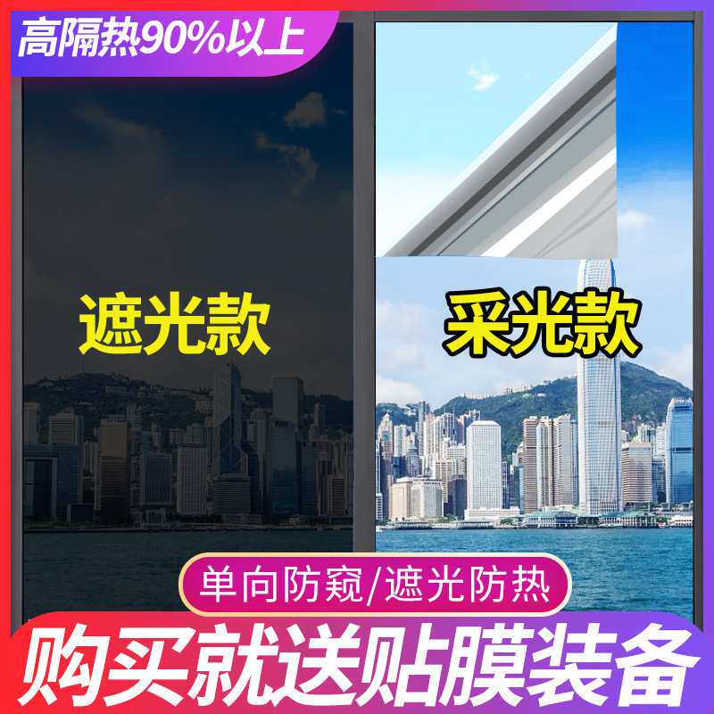 遮阳防晒隔热膜 50x5米 隔紫外线玻璃遮阳单向透视静电防晒隔热膜