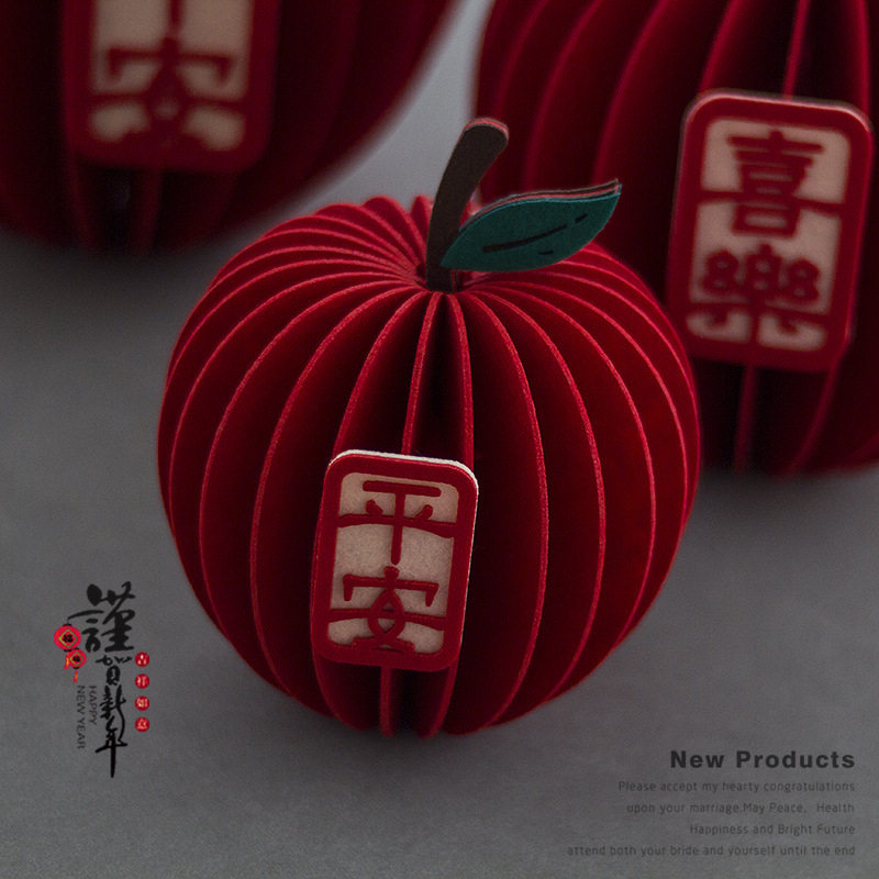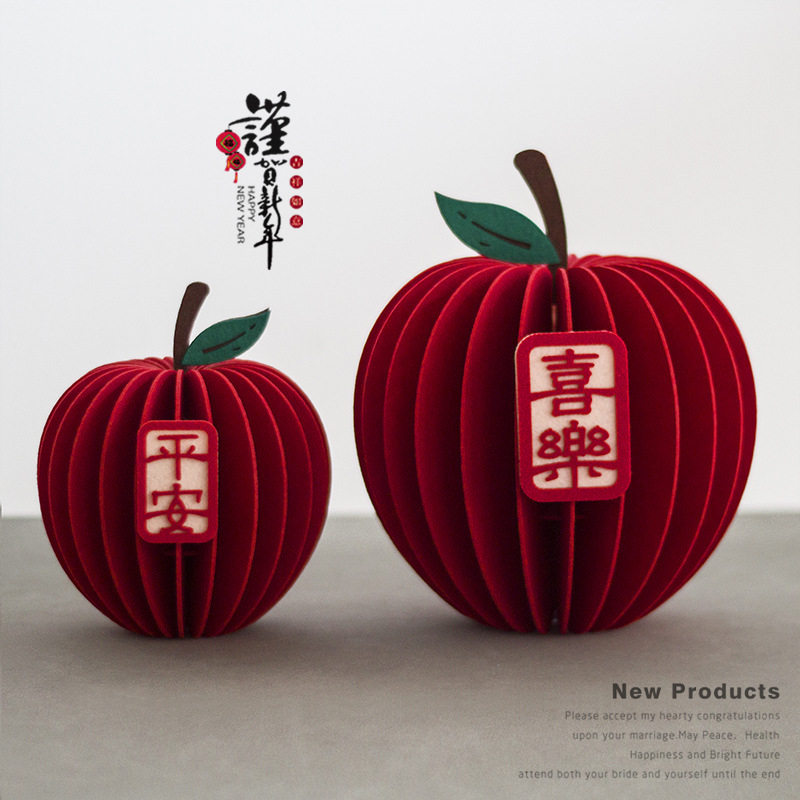2026新年苹果平安桌面摆件圣诞毛毡装饰氛围布置春节过年乔迁礼物