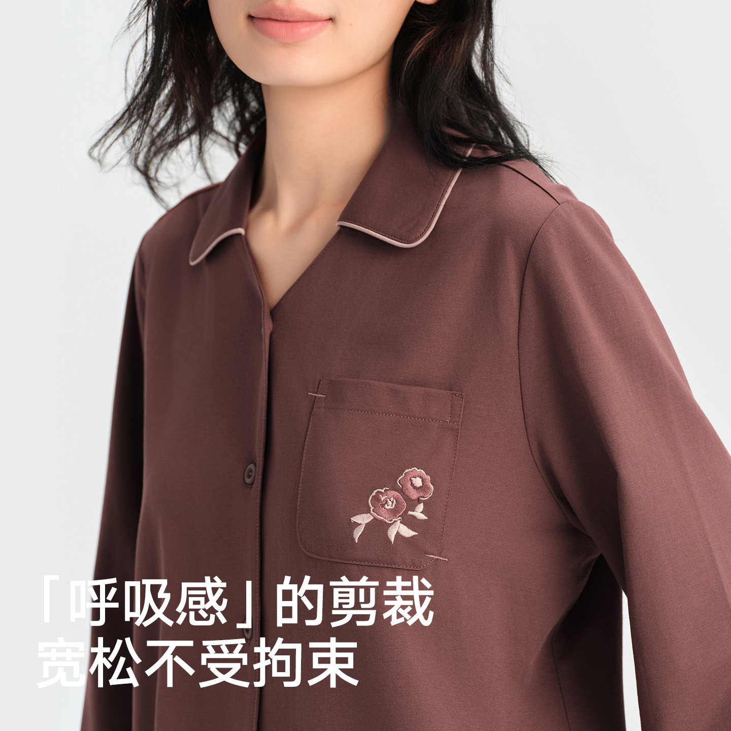 松山棉店棉莫国风家居服套装山茶花刺绣睡衣柔软亲肤透气情侣款