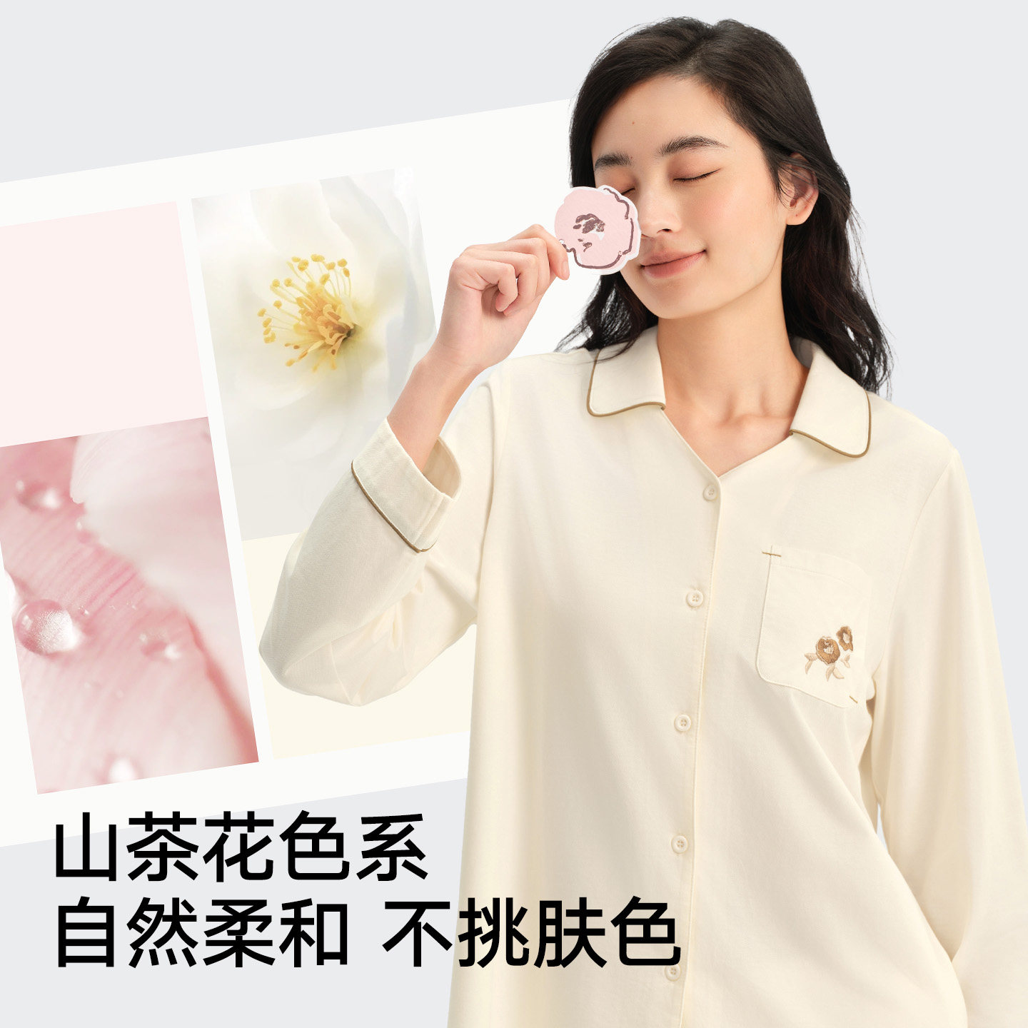 轻国风设计 山茶花刺绣 柔软亲肤 透气
