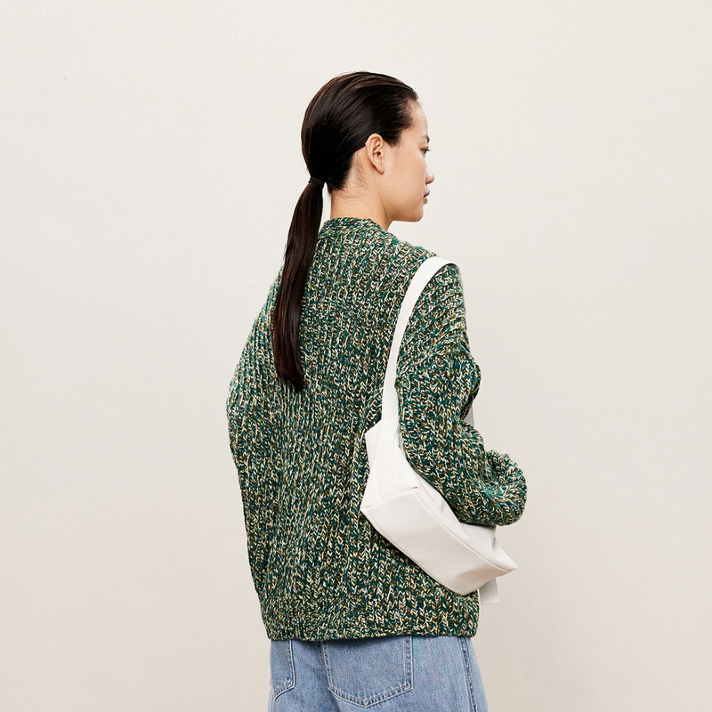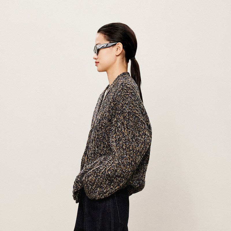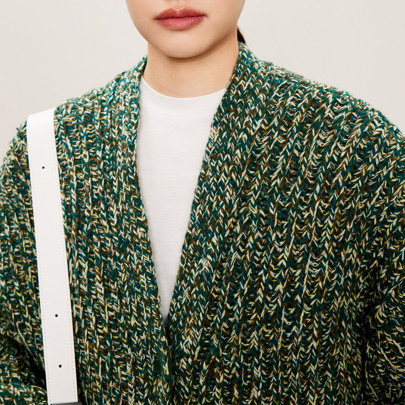 LESS秋绵羊毛简约通勤风长袖针织衫V领短款开襟毛衫女2O9313890