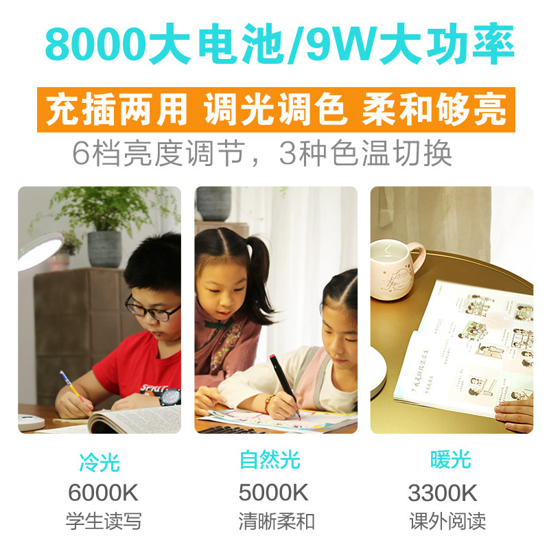 台灯护眼学习专用防近视书桌宿舍学生儿童充电全光谱阅读写字作业