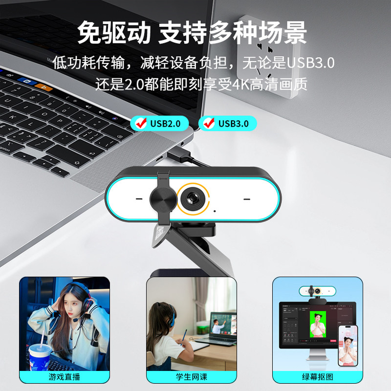 恒侨通电脑摄像头4k高清USB游戏直播9倍变焦绿幕淘宝主播教学家用