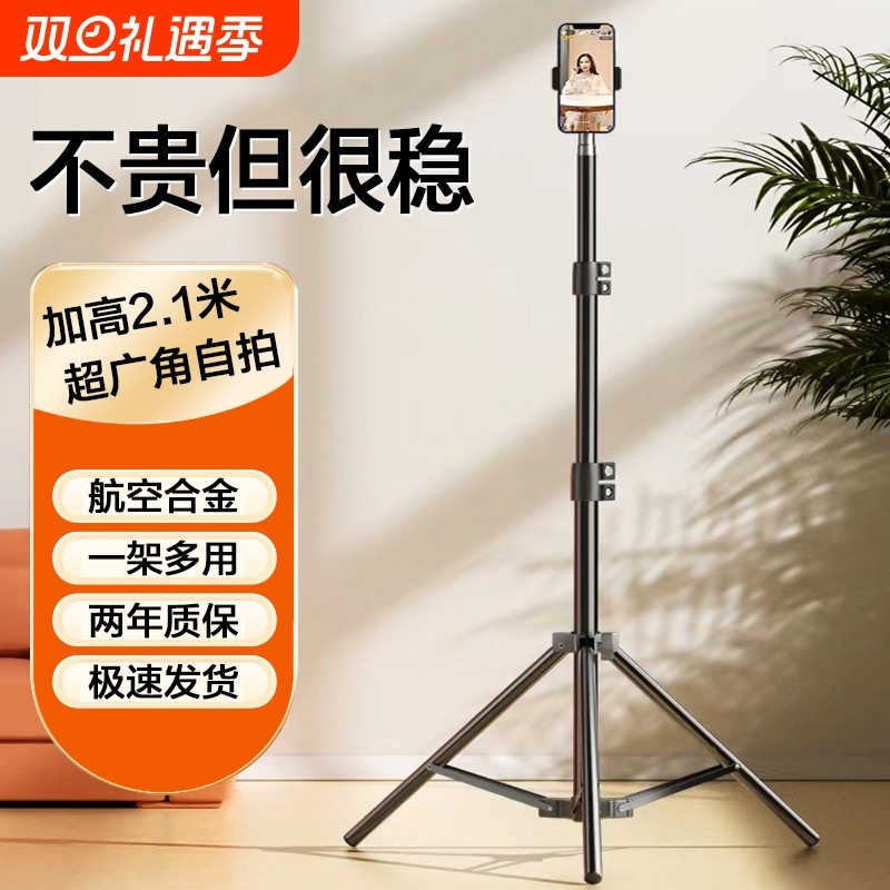 手机拍摄支架直播专用自拍杆三脚架落地式多功能支撑架通用捭机架户外便携伸缩升降网课考研复试架子三角支夹