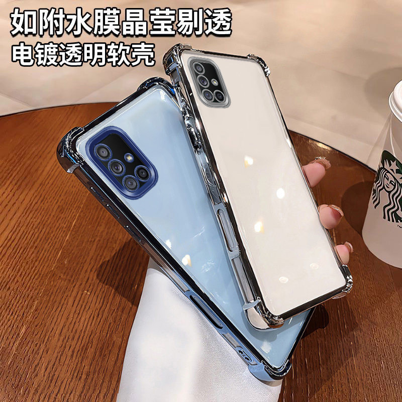 三星a71手机壳新款四角气囊硅胶防摔时尚镜头全包软壳适用Samsunga71高级感奢华强抗氧化简约电镀透明手机壳