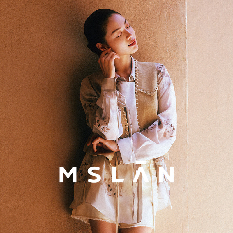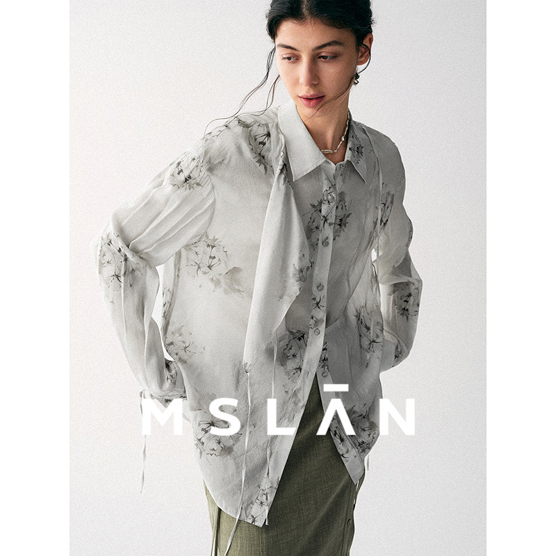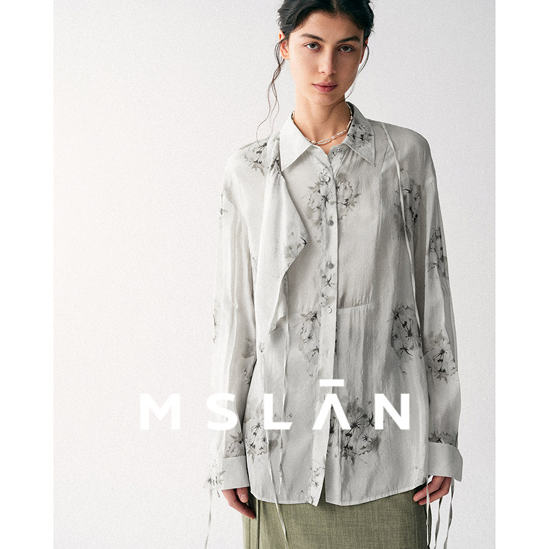 明星同款/MSLAN26春 淡人风宽松落肩袖雾面提花长袖衬衫MGCN068
