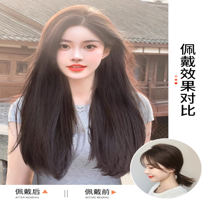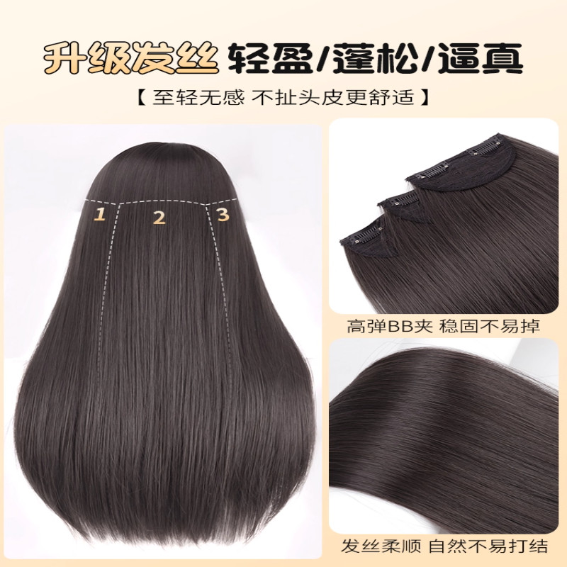 假发片女长发一片式隐形无痕真发蓬松三片式直发量接发贴片