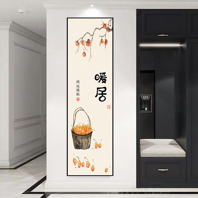 新中式餐厅装饰画饭厅墙面壁画客厅沙发背景墙挂画圆形柿柿如意画