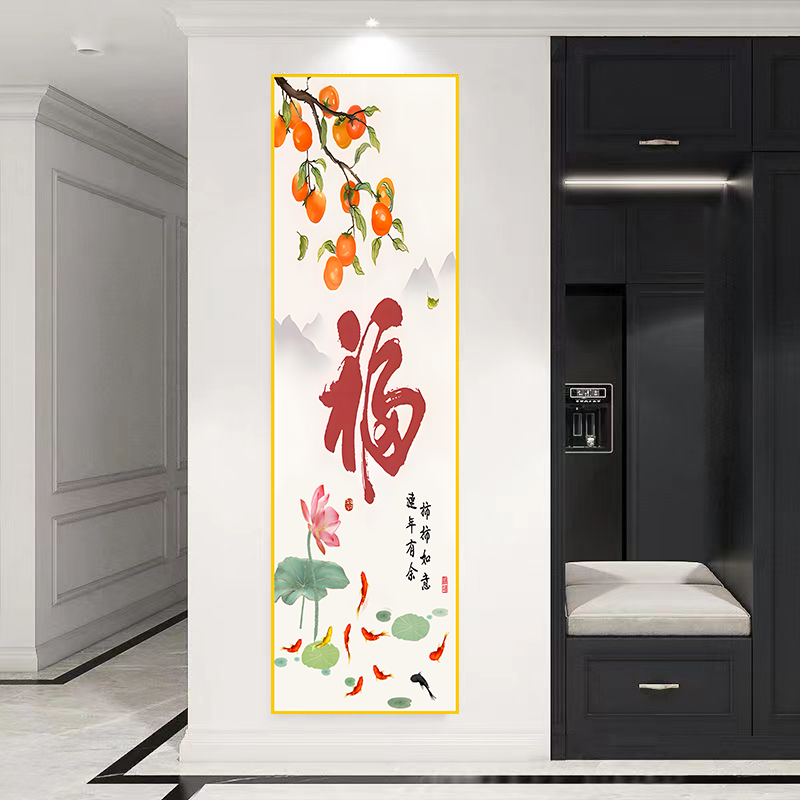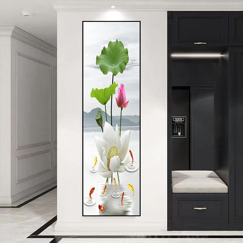 自粘玄关装饰画轻奢过道走廊客厅现代简约三维立体画长条竖版壁画