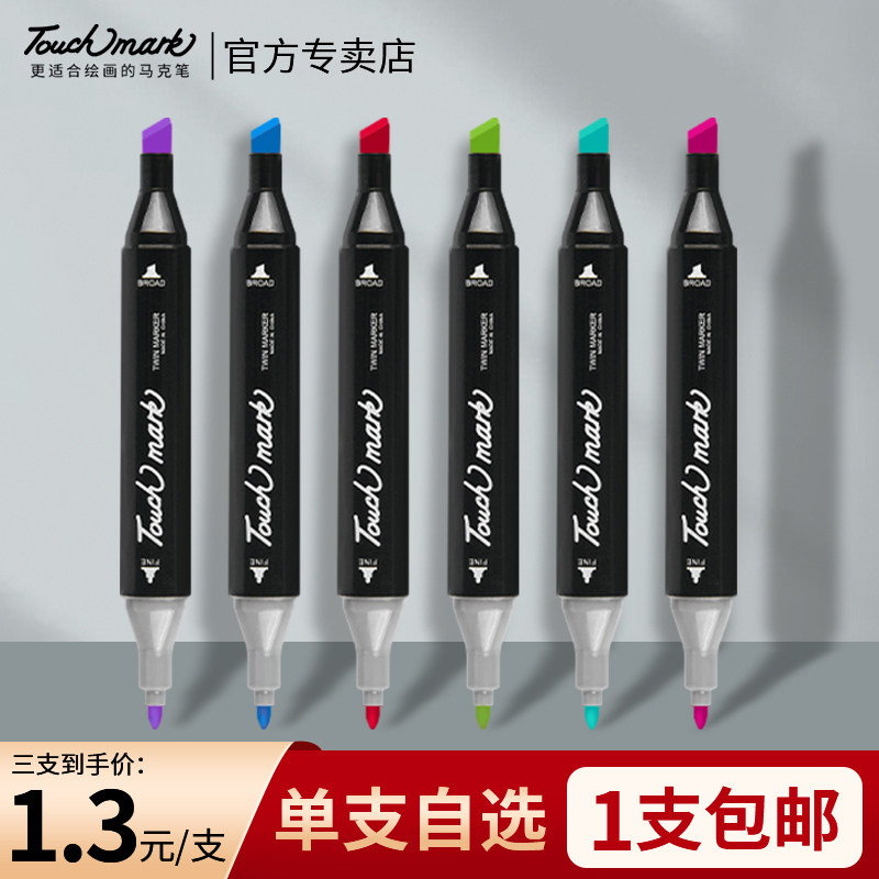 【3支55折】TOUCH MARK油性马克笔美术专用单支自选动漫绘画笔小学生正版补色手绘设计水彩双头黑色120号单只