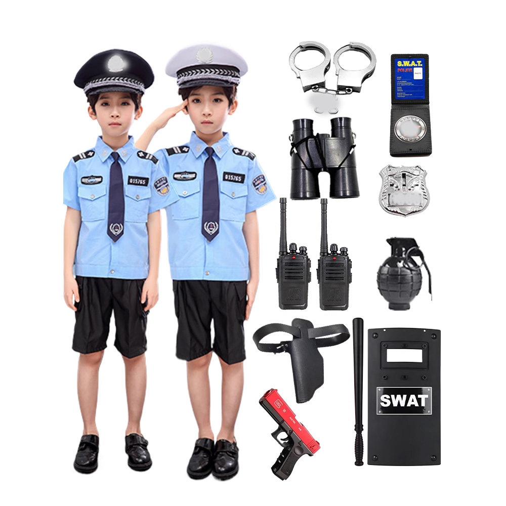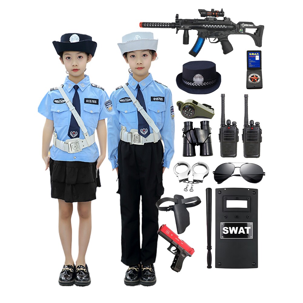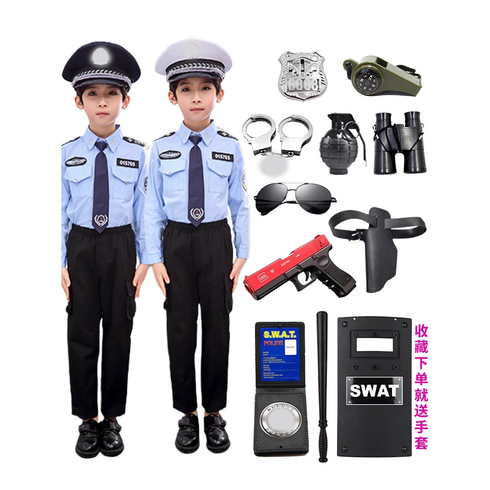 儿童小警察服短袖警官衣服玩具装备男女童小交警演出服小军装套装