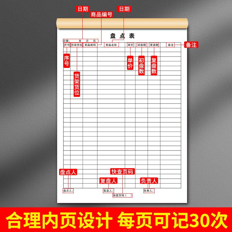 A4盘点表仓库库存明细表商品进货记录本服装店库存盘点表仓库进货库存盘点登记表店铺营业商品库存盘点月报表