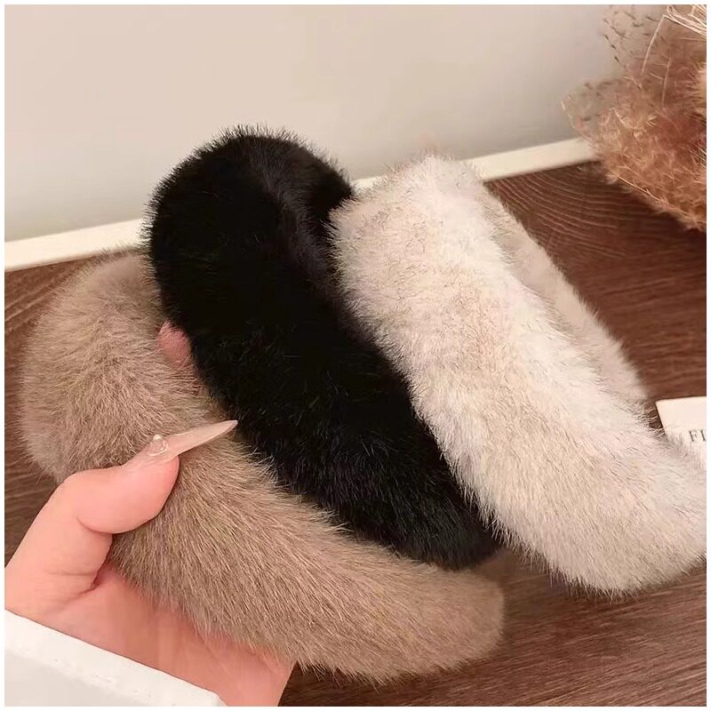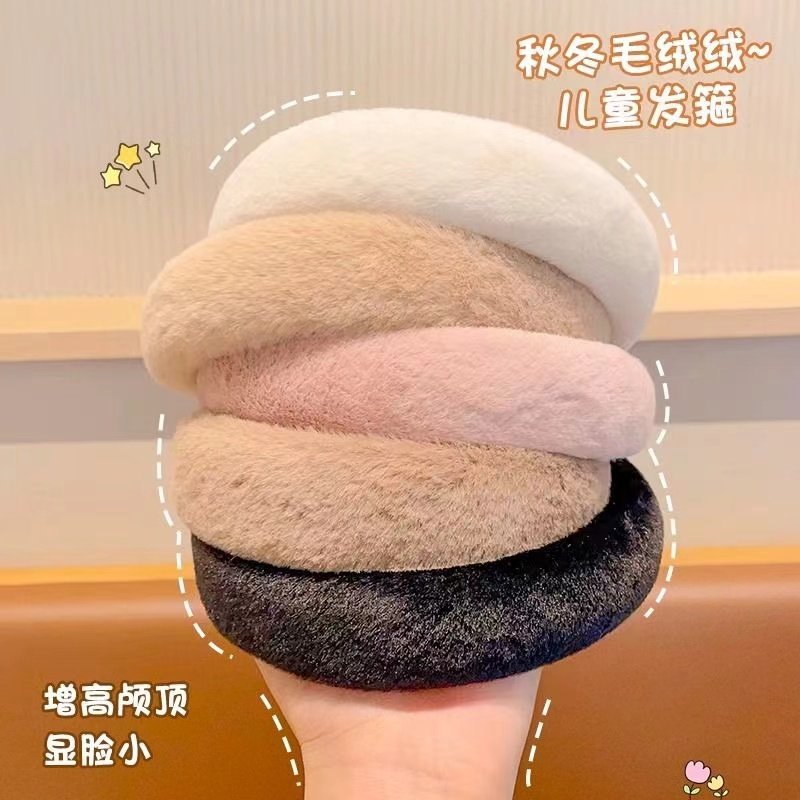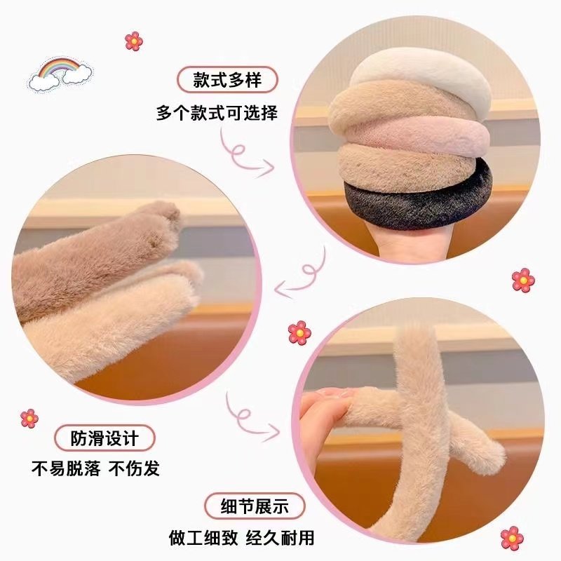 高级感高颅顶发箍女款毛绒秋冬洗脸加厚发饰头箍白色粉色黑色