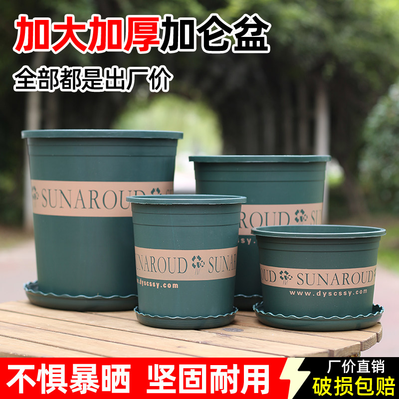 圆形加厚塑料树脂花盆绿植种植盆栽控根透气耐用加仑盆阳台带托盘
