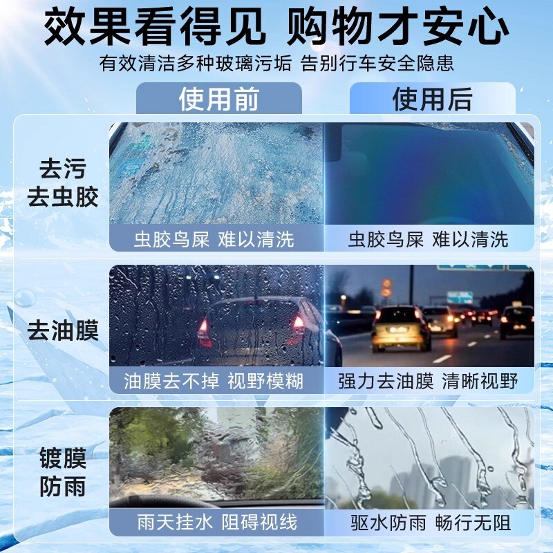 汽车玻璃水强力去污去油膜车用去除虫胶浓缩液雨刮水镀晶四季通用
