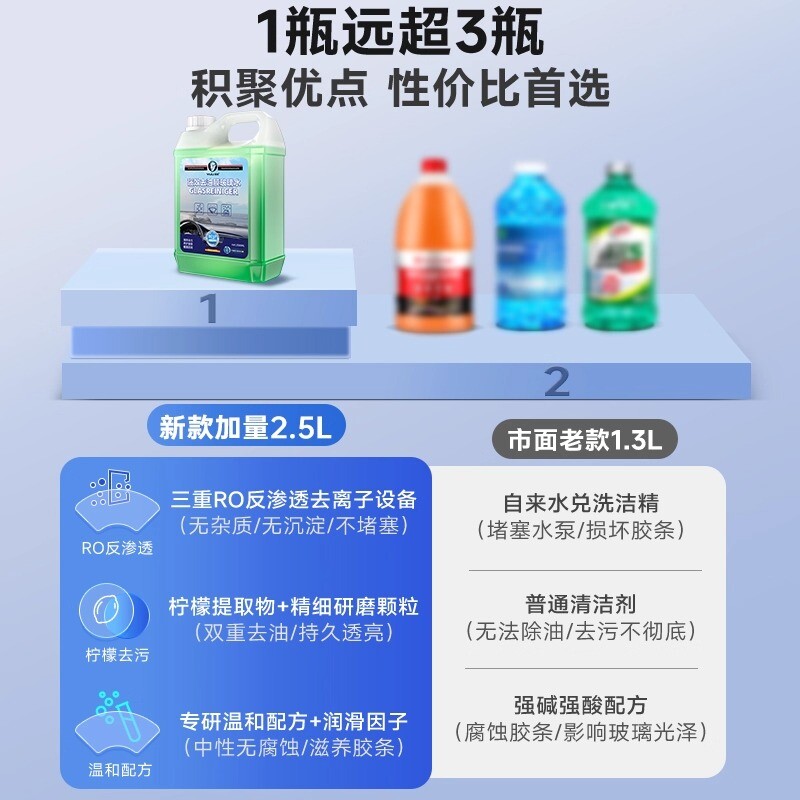 德国原液汽车玻璃水2L装防雨镀膜去油膜虫胶强力清洁除垢冬季防冻