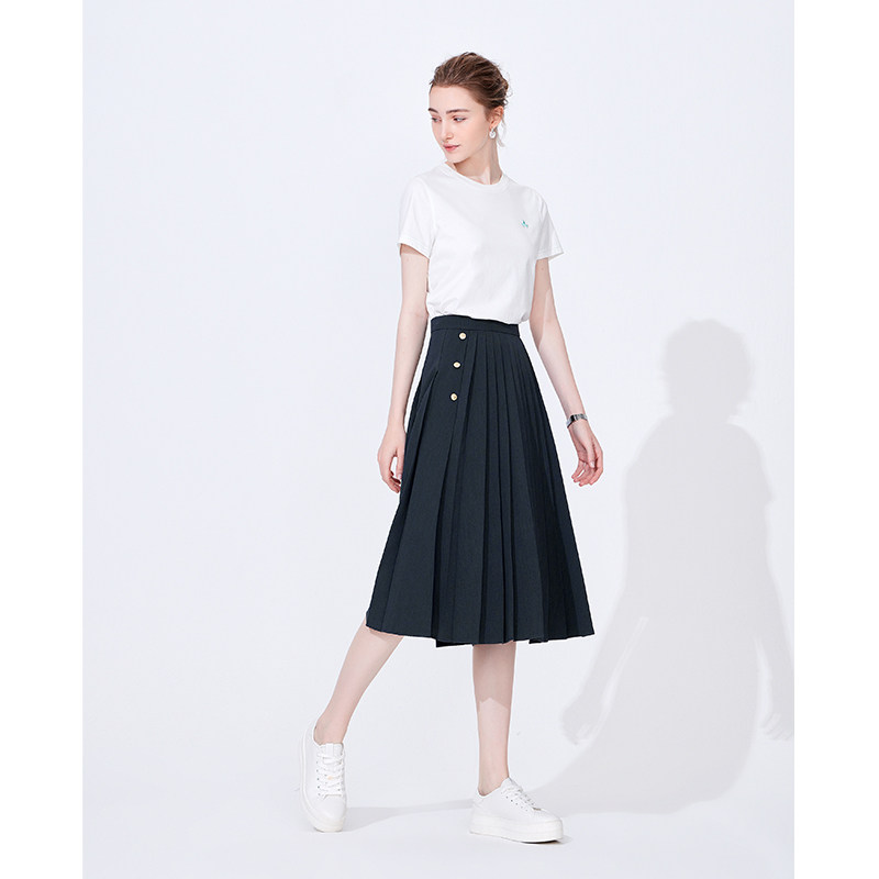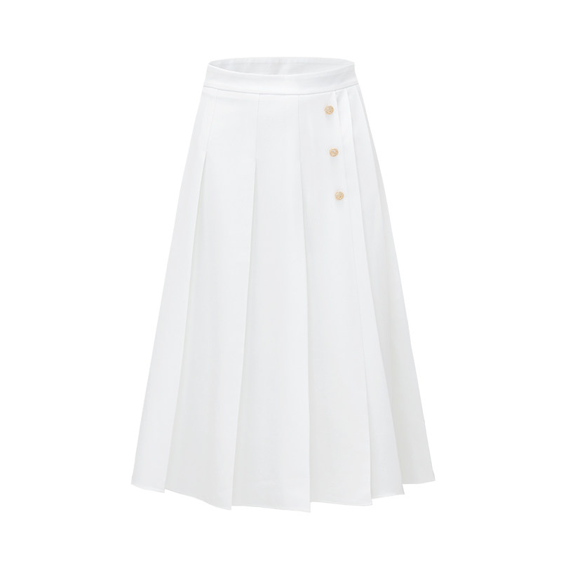 Navigare意大利小帆船白色开衩半身裙女小个子百褶裙显瘦a字裙子