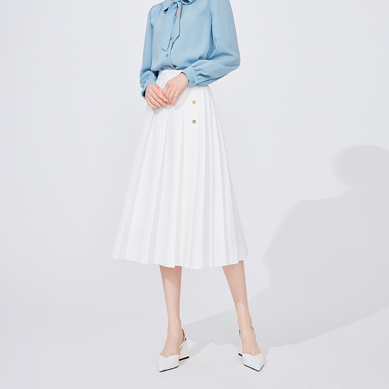 LIMONN |秋冬多颜色经典高腰显腿长A字百褶半身裙长裙