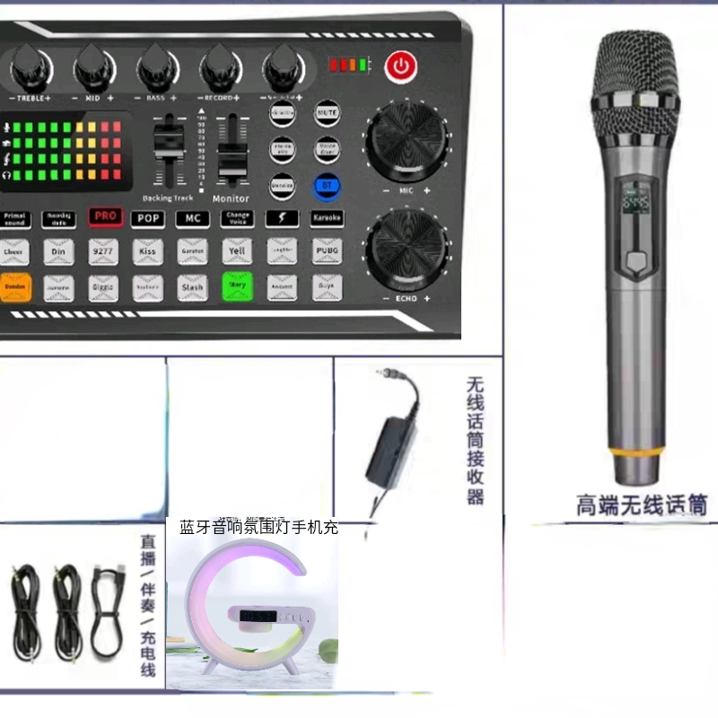 跨境 F998直播声卡一体 充电式话筒 电容麦克风支架 直播套装