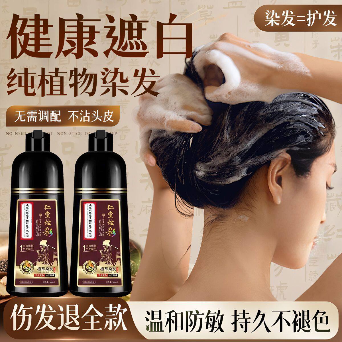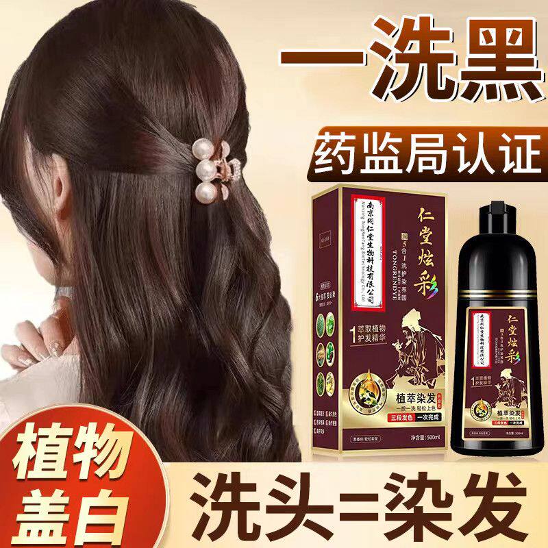 南京同仁堂植物染发剂纯男女遮盖白发专用天然官方正品泡泡染发膏